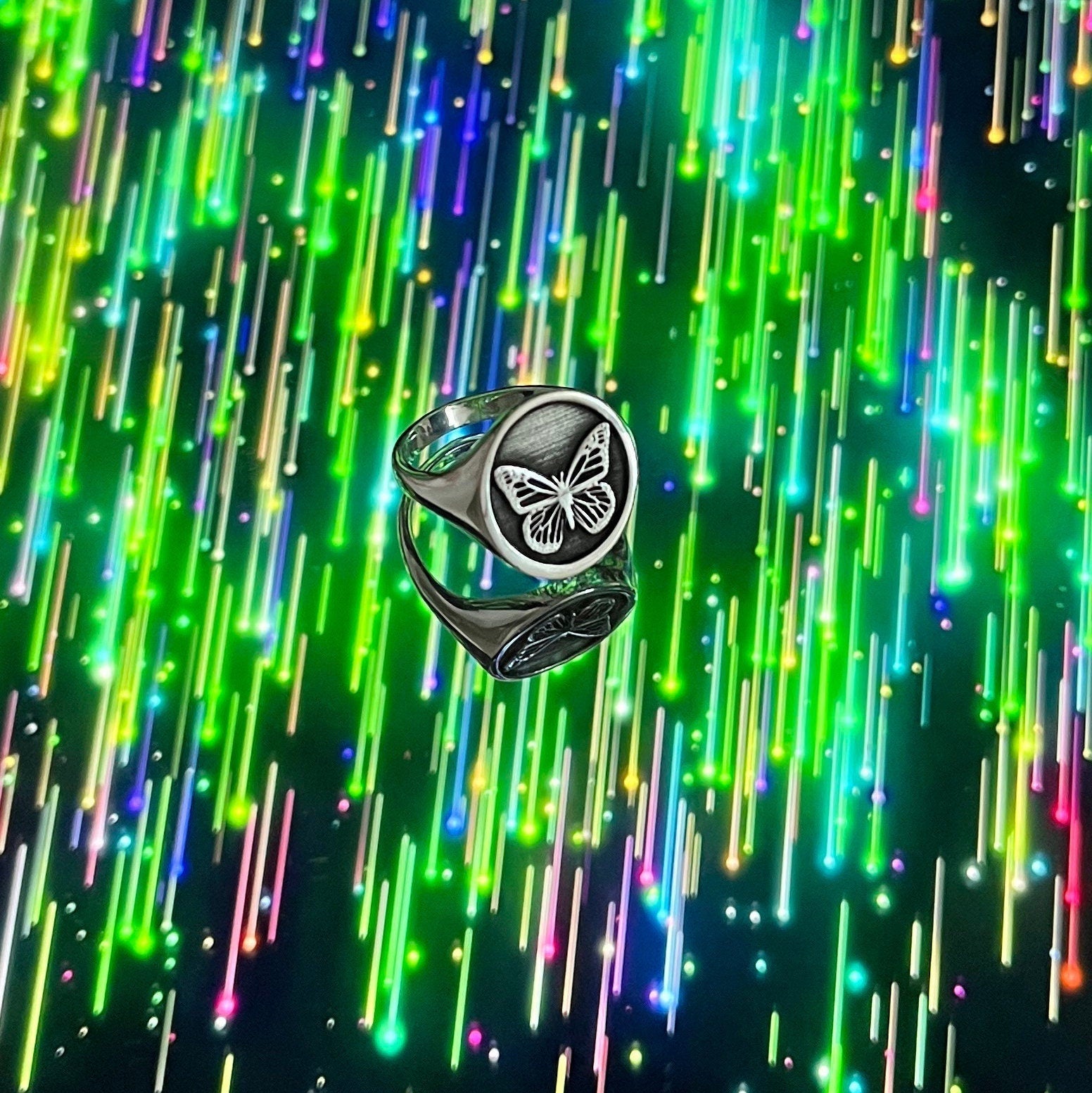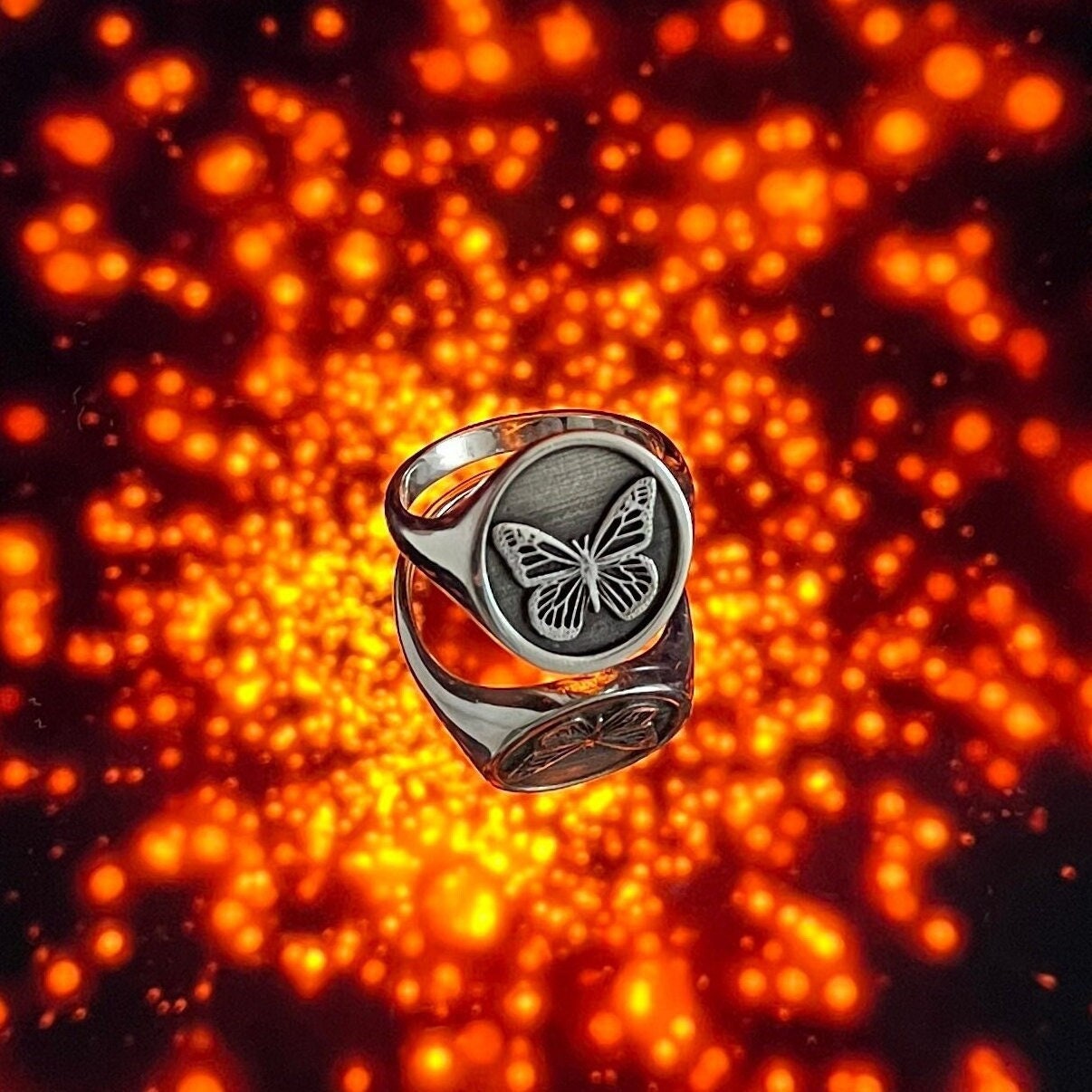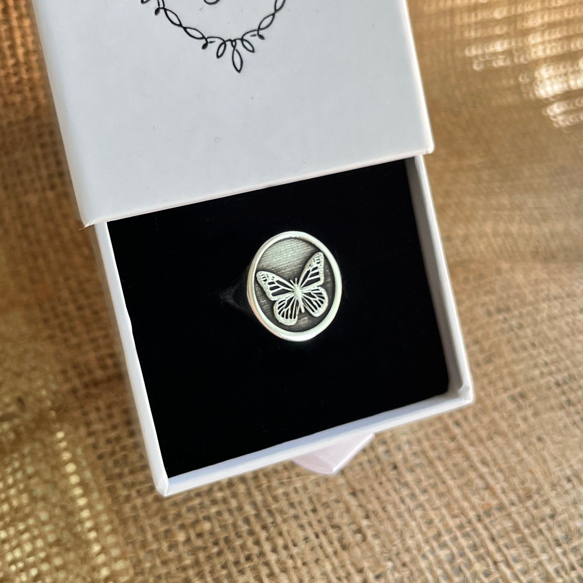 • This Inspired by american traditional tattoos, Butterfly Signet ring is stylish and pretty ideal for everyday use. Engraving details of 925k handmade silver ring are very detailed and eye-catching. The ring is coated with rodium to emphasize the details of engraving •