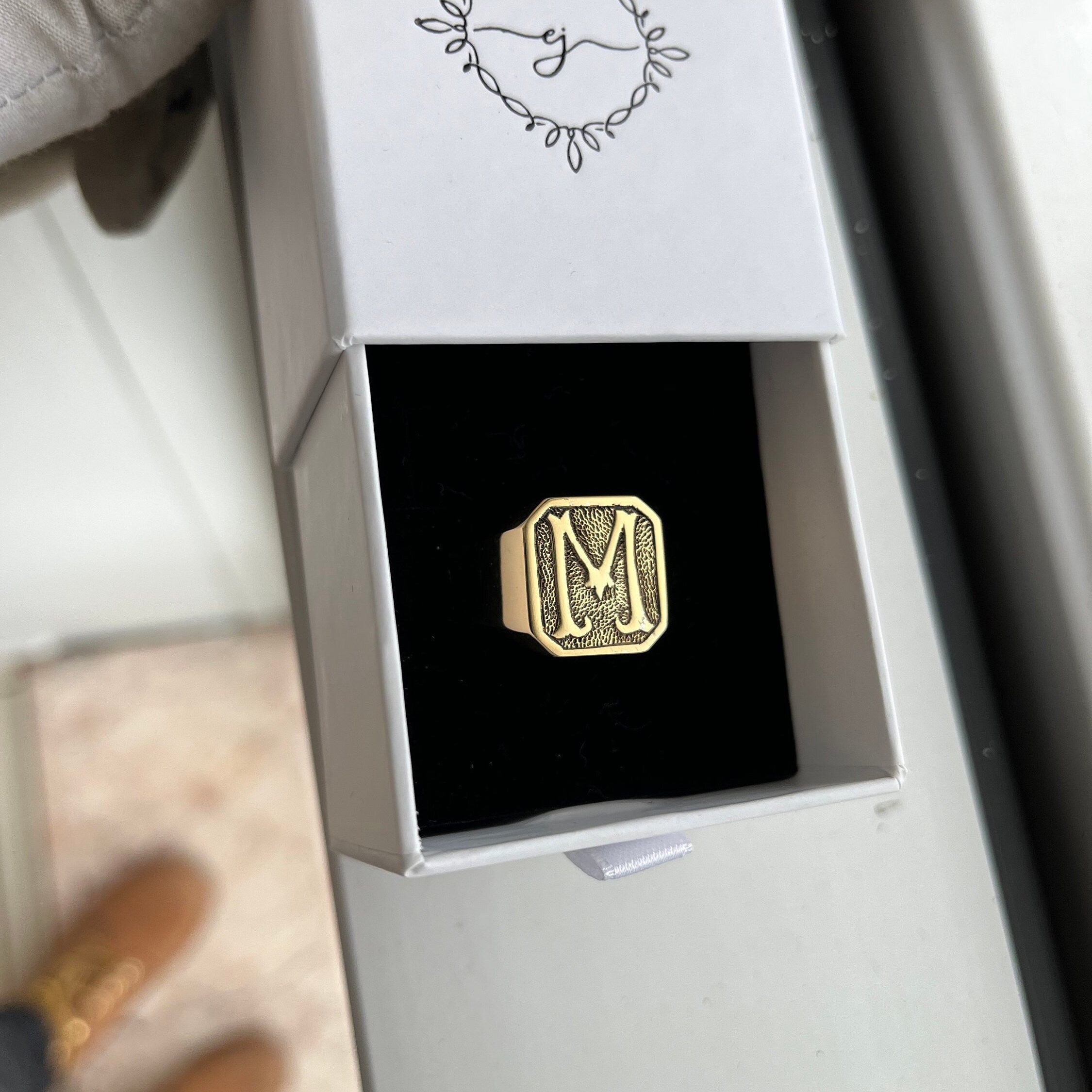 Hand Engraved Monogram Signet Ring