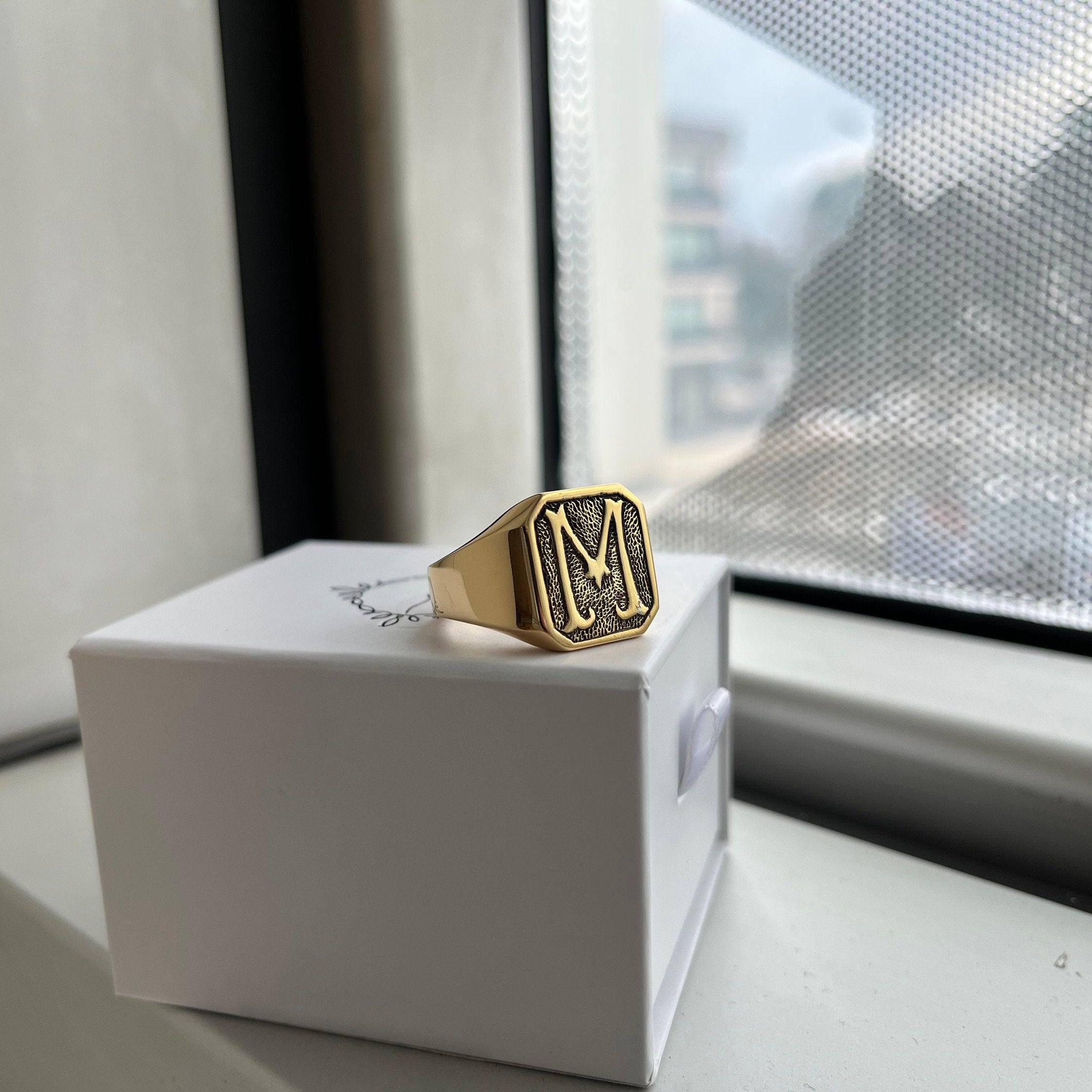 - Engraved Signet Ring will be completely handmade.