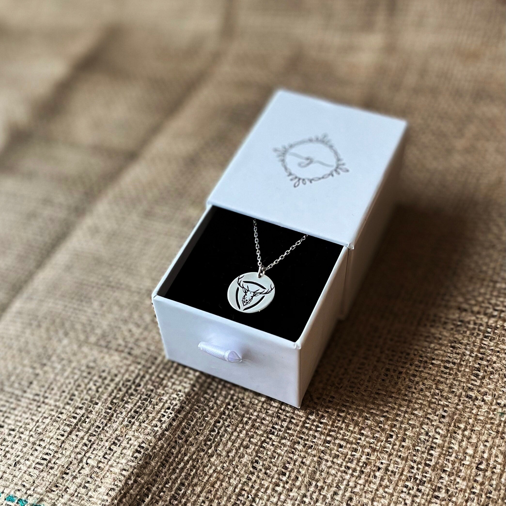 • This Deer Necklace is stylish and pretty ideal for everyday use. Engraving details of 925k handmade silver necklace are very detailed and eye-catching. The ring is coated with rodium to emphasize the details of engraving •