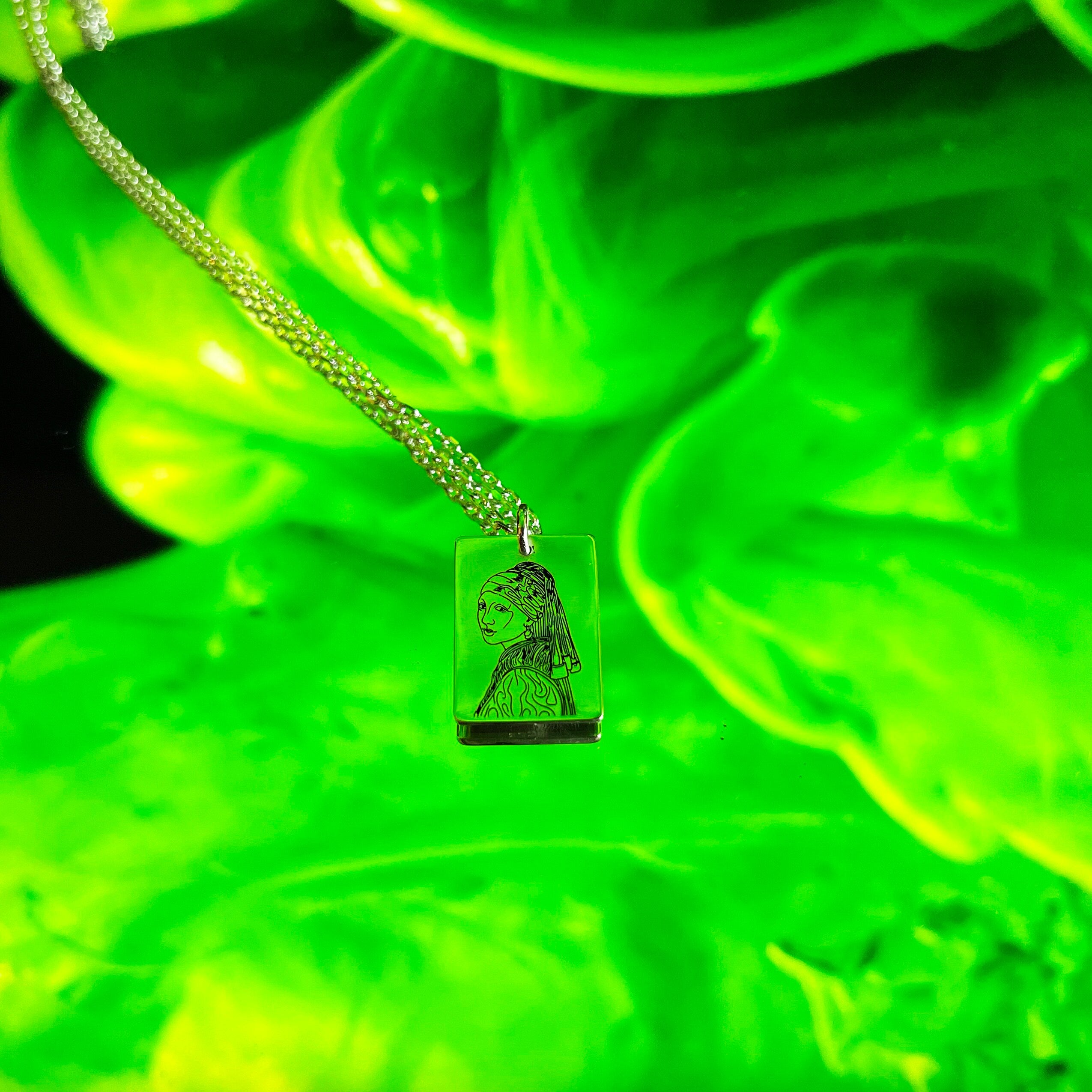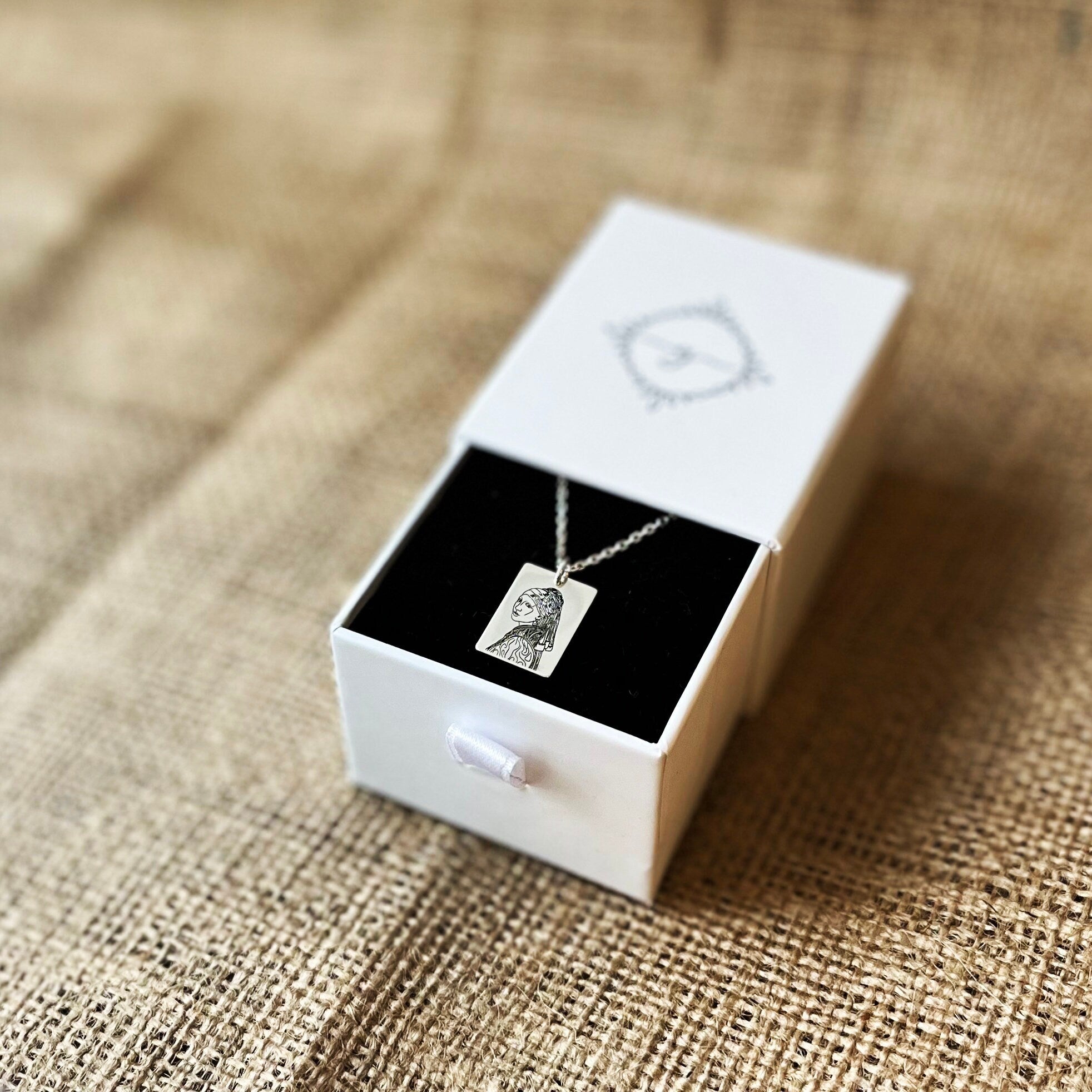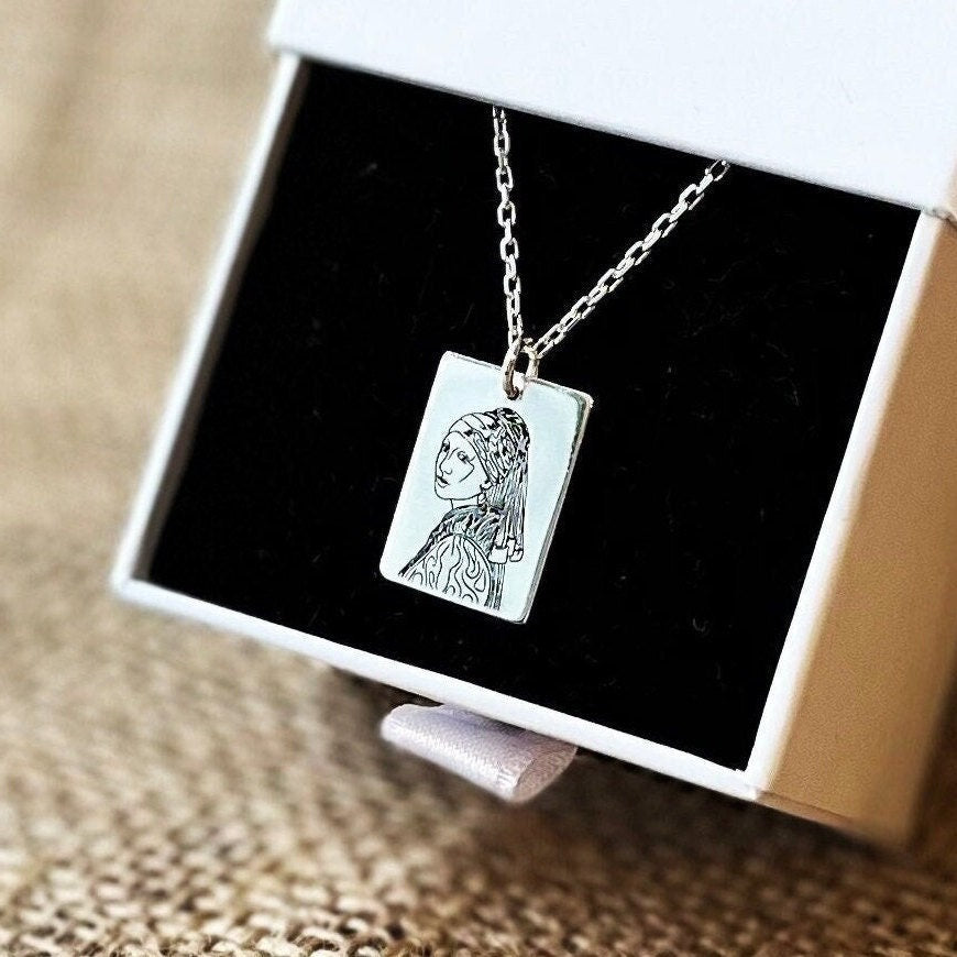 • This The Girl with a Pearl Earring Necklace is stylish and pretty ideal for everyday use. Engraving details of 925k handmade silver necklace are very detailed and eye-catching. The ring is coated with rodium to emphasize the details of engraving •
