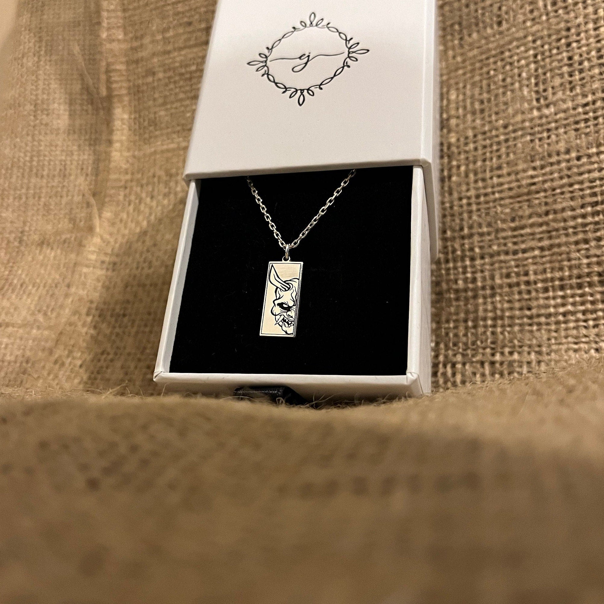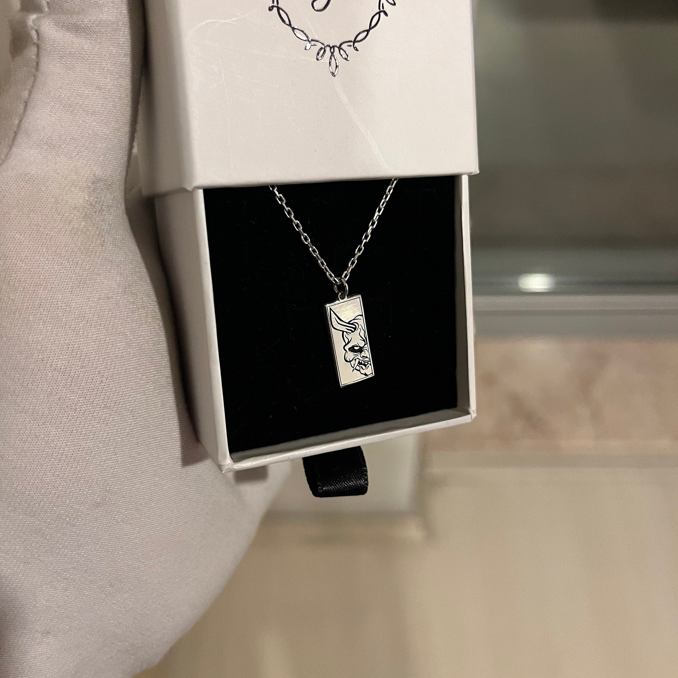 • This Oni Mask Necklace, Hannya Mask Pendant is stylish and pretty ideal for everyday use. Engraving details of 925k handmade silver necklace are very detailed and eye-catching. The ring is coated with rodium to emphasize the details of engraving •