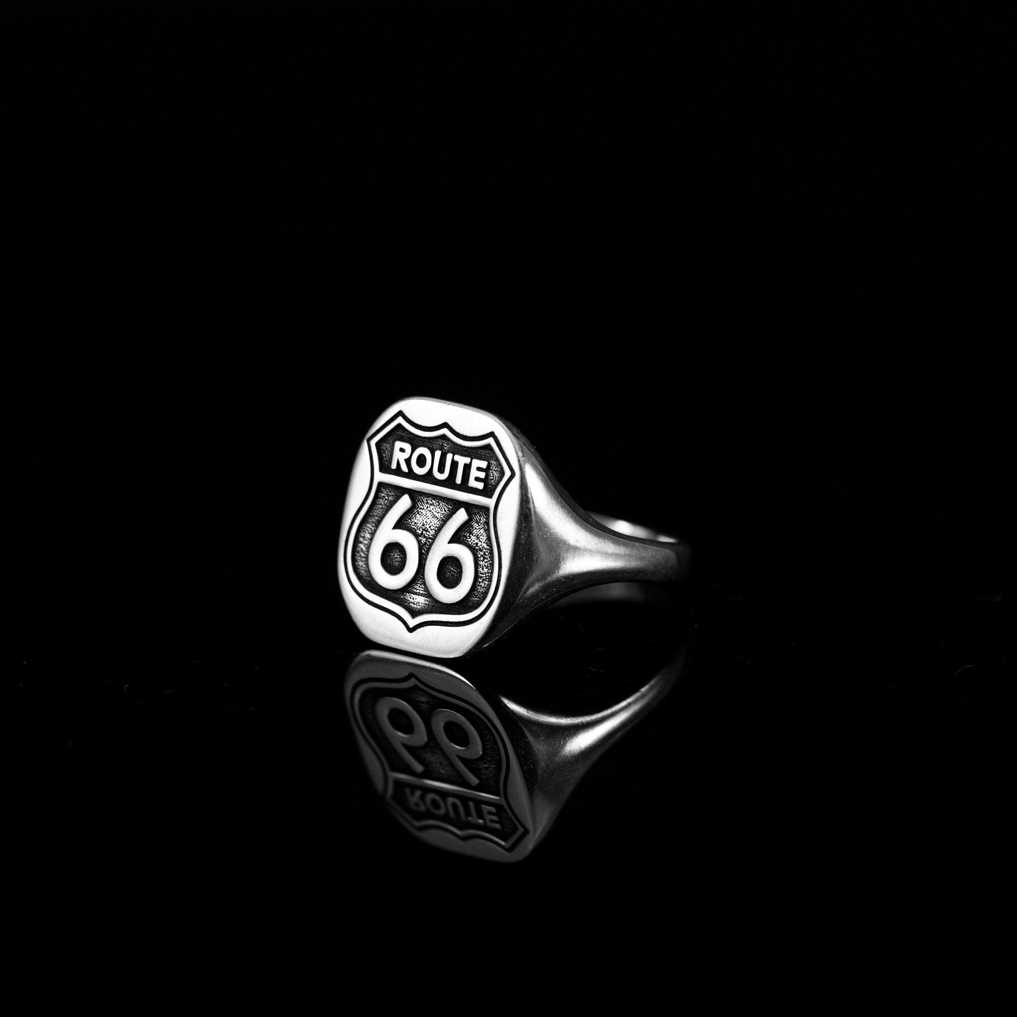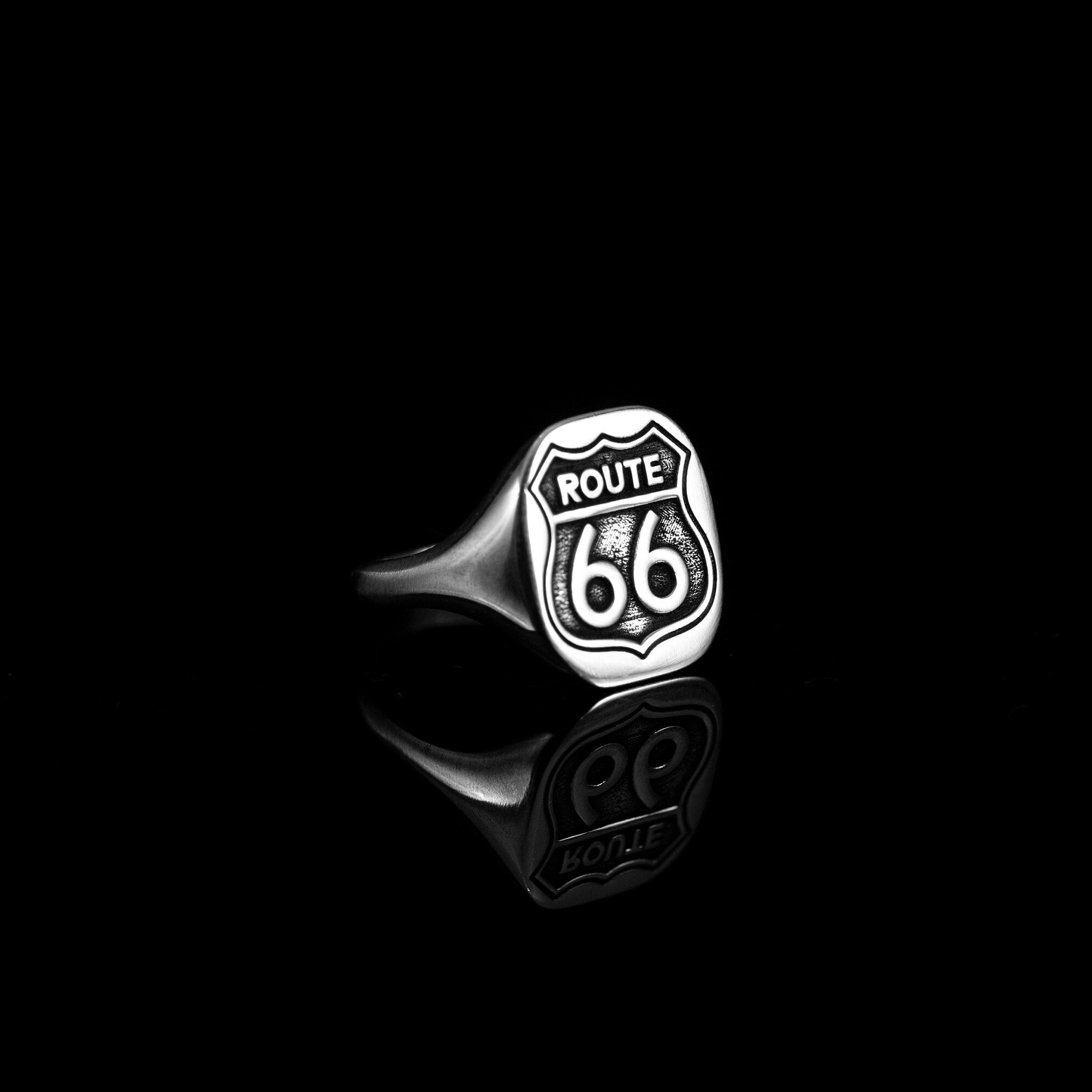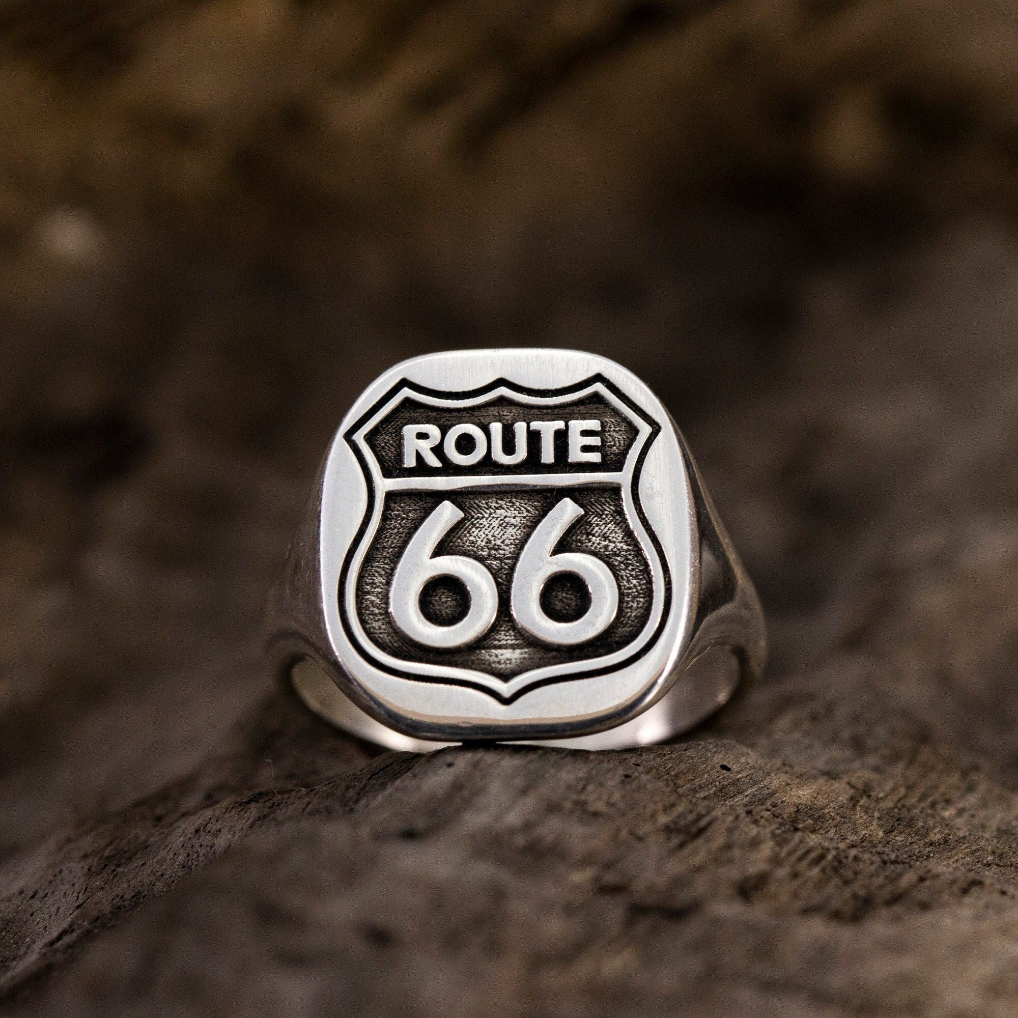 This amazing signet ring is made from 925 sterling silver and features an engraved design of the legendary Route 66 sign. It's a perfect choice for motorcycle enthusiasts, so you can buy it for yourself or give it as a gift to a biker friend.