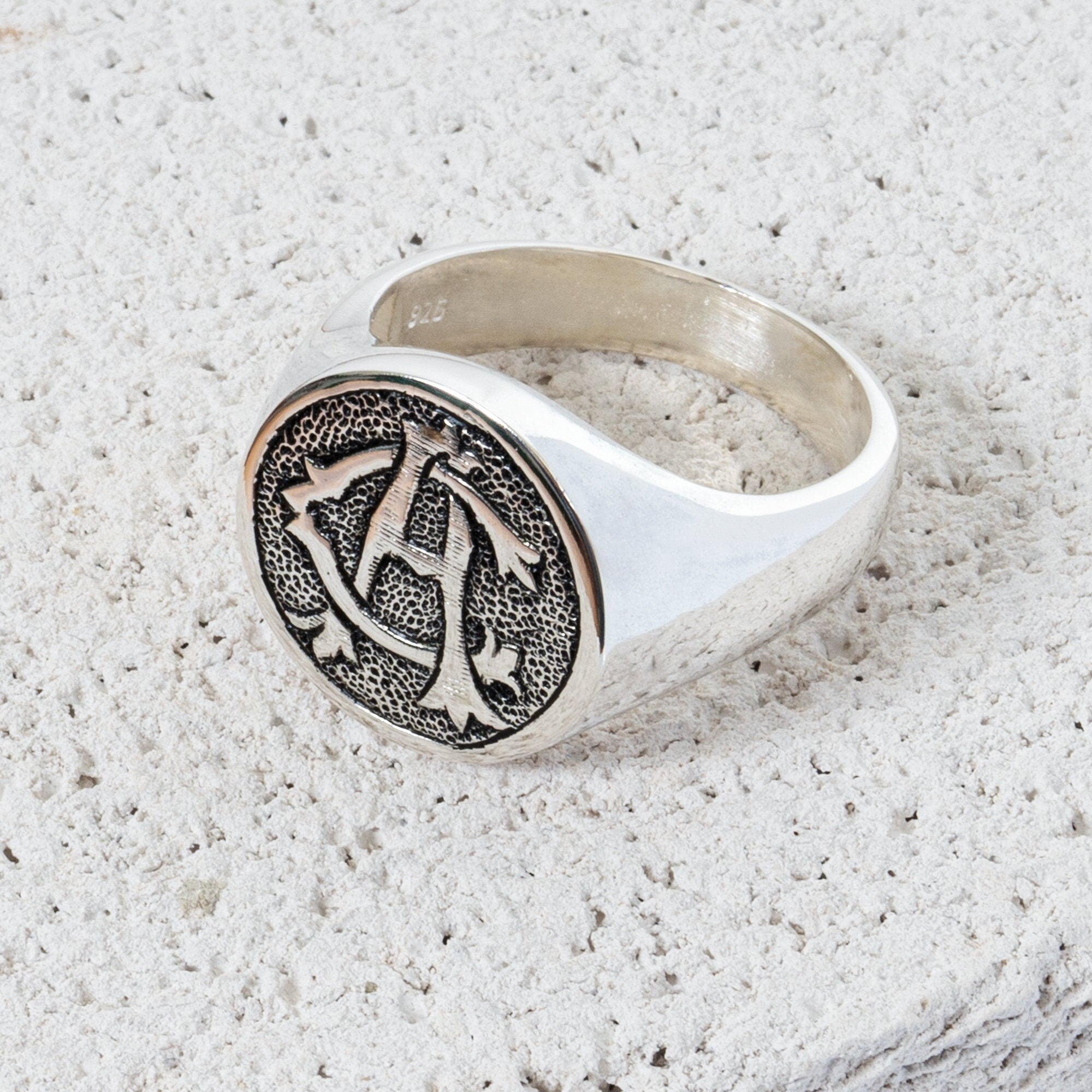 Hand Engraved Monogram Signet Ring