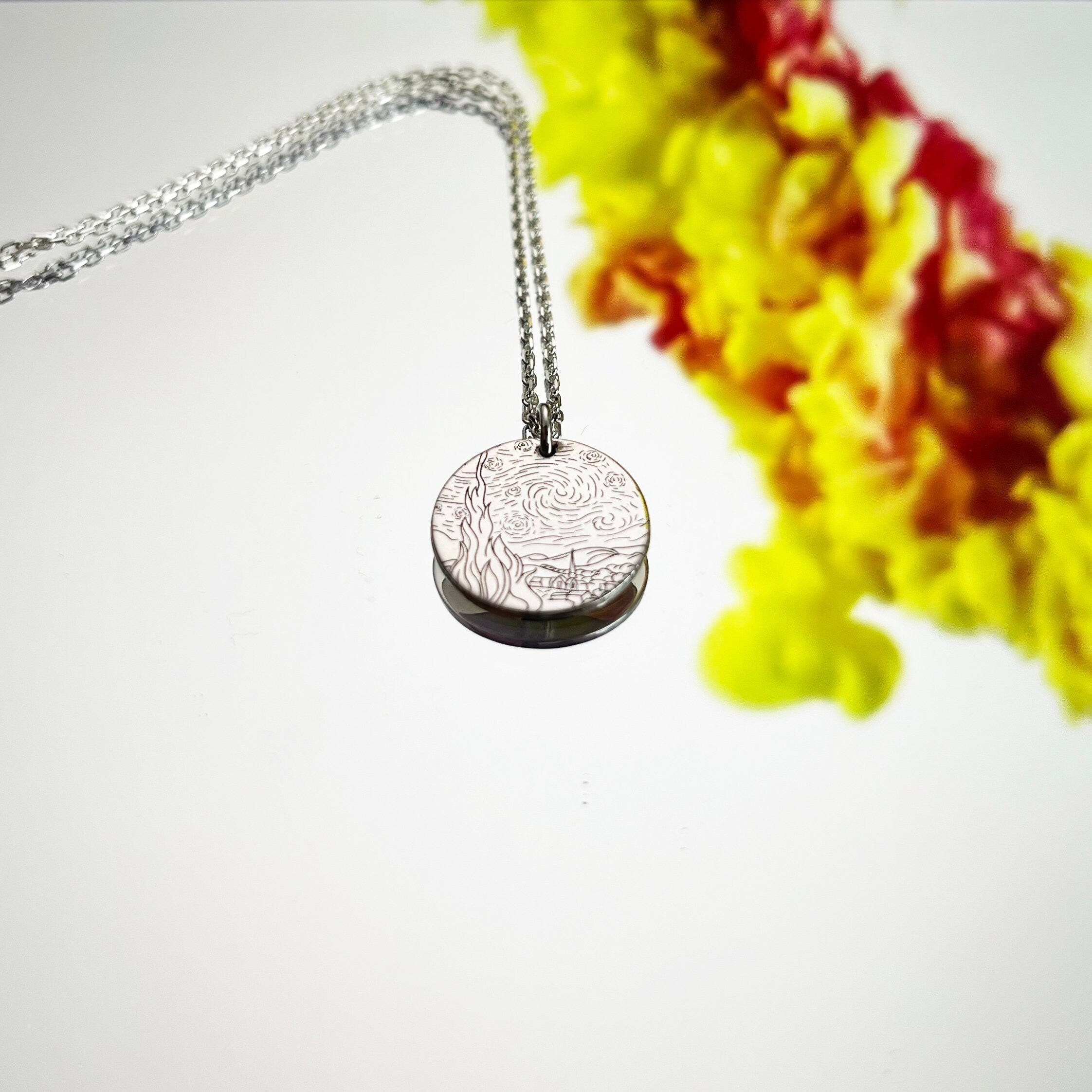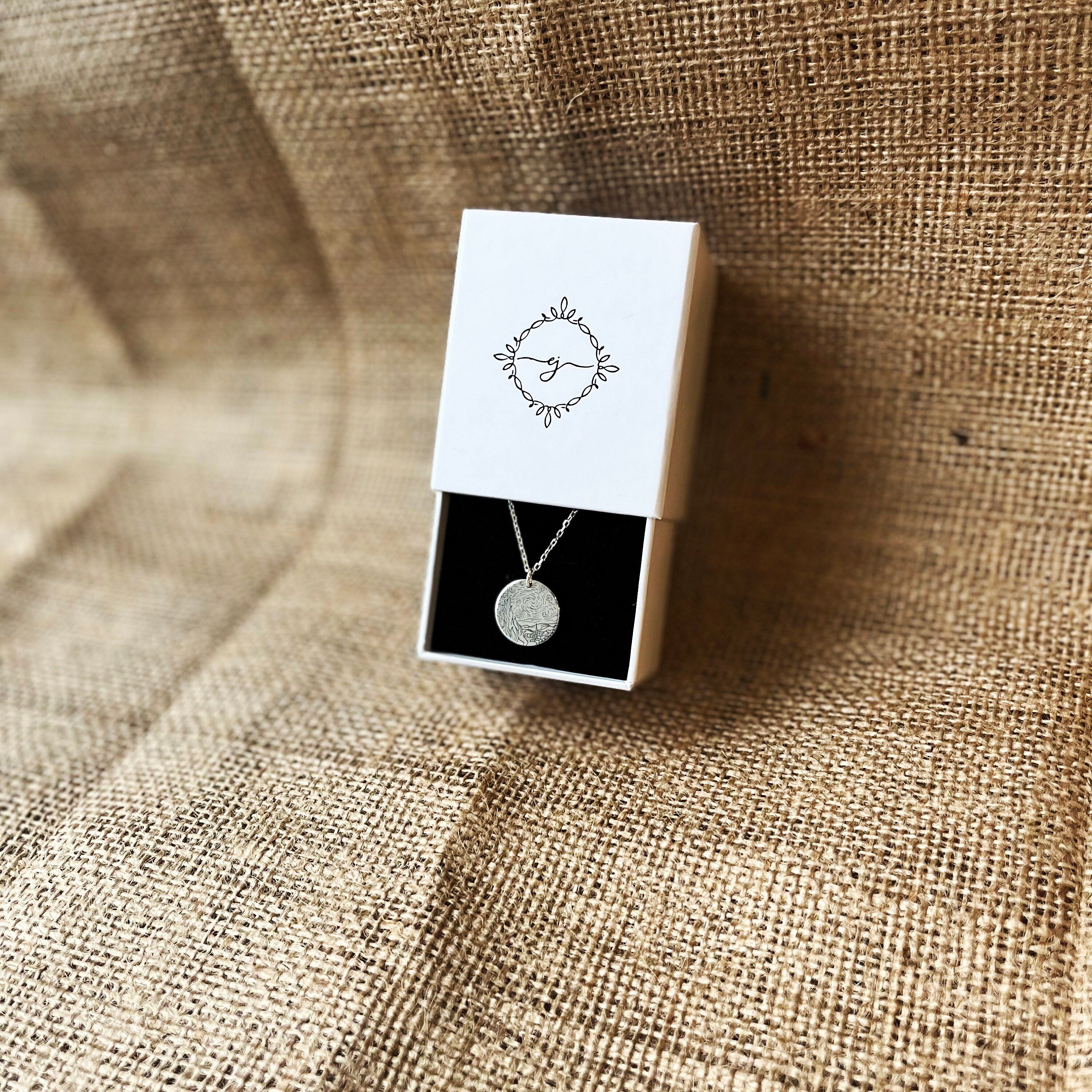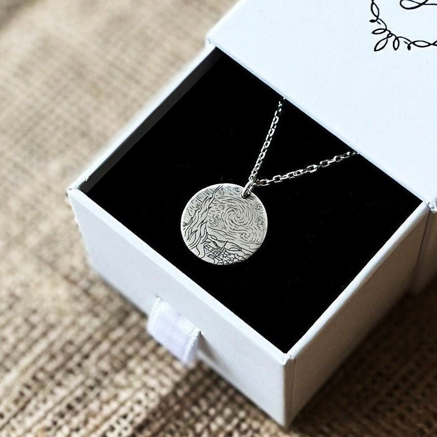 • This Starry Night Necklace is stylish and pretty ideal for everyday use. Engraving details of 925k handmade silver necklace are very detailed and eye-catching. The ring is coated with rodium to emphasize the details of engraving •
