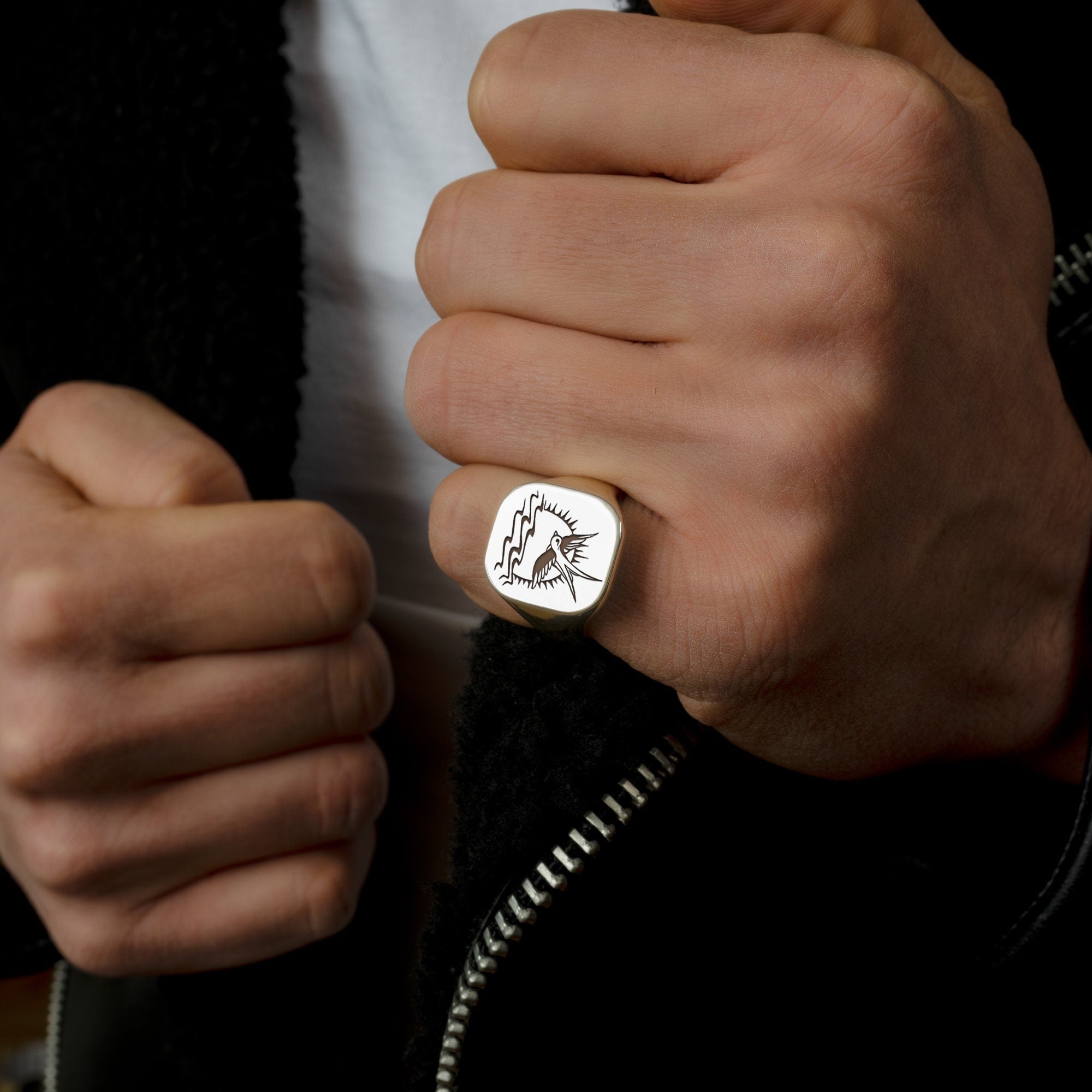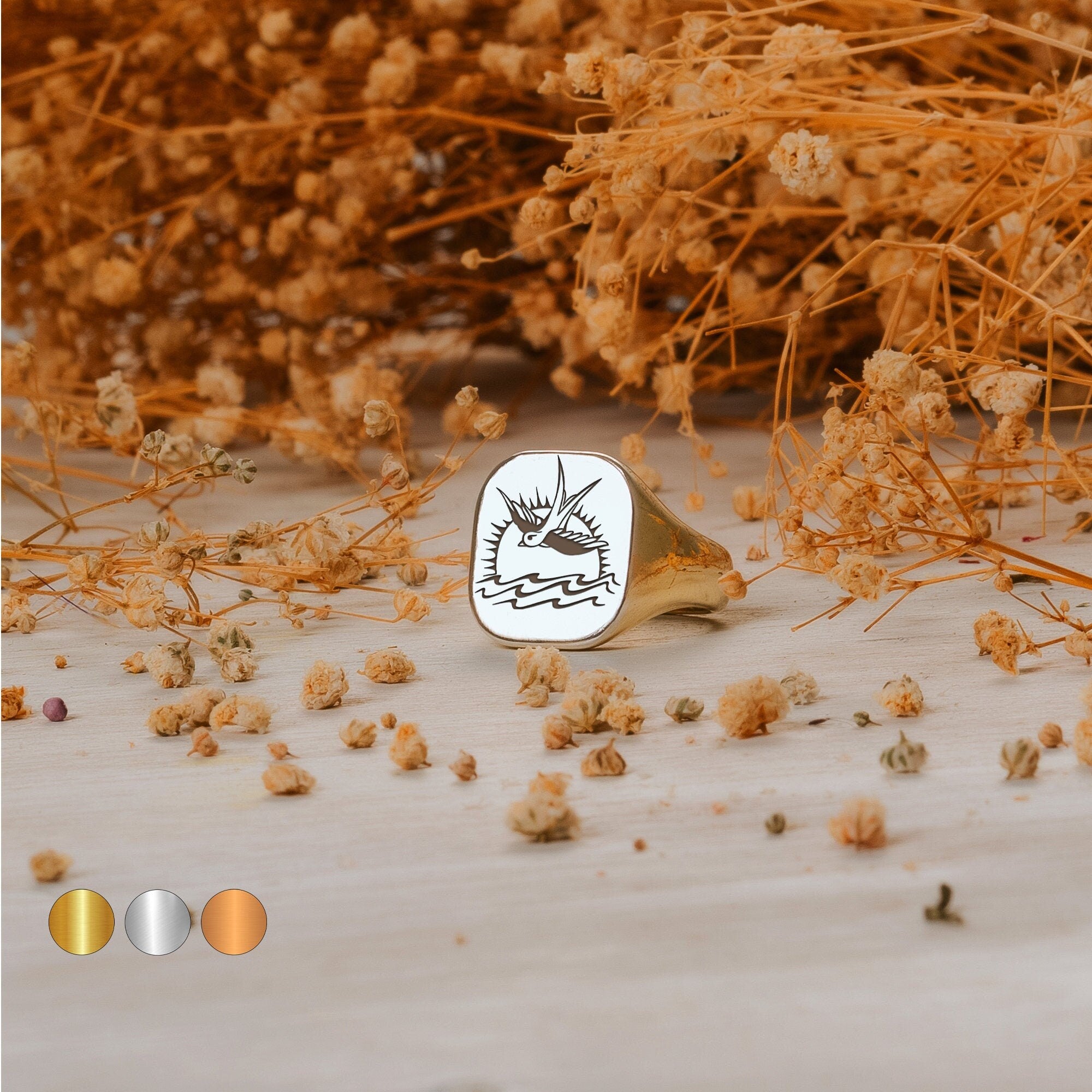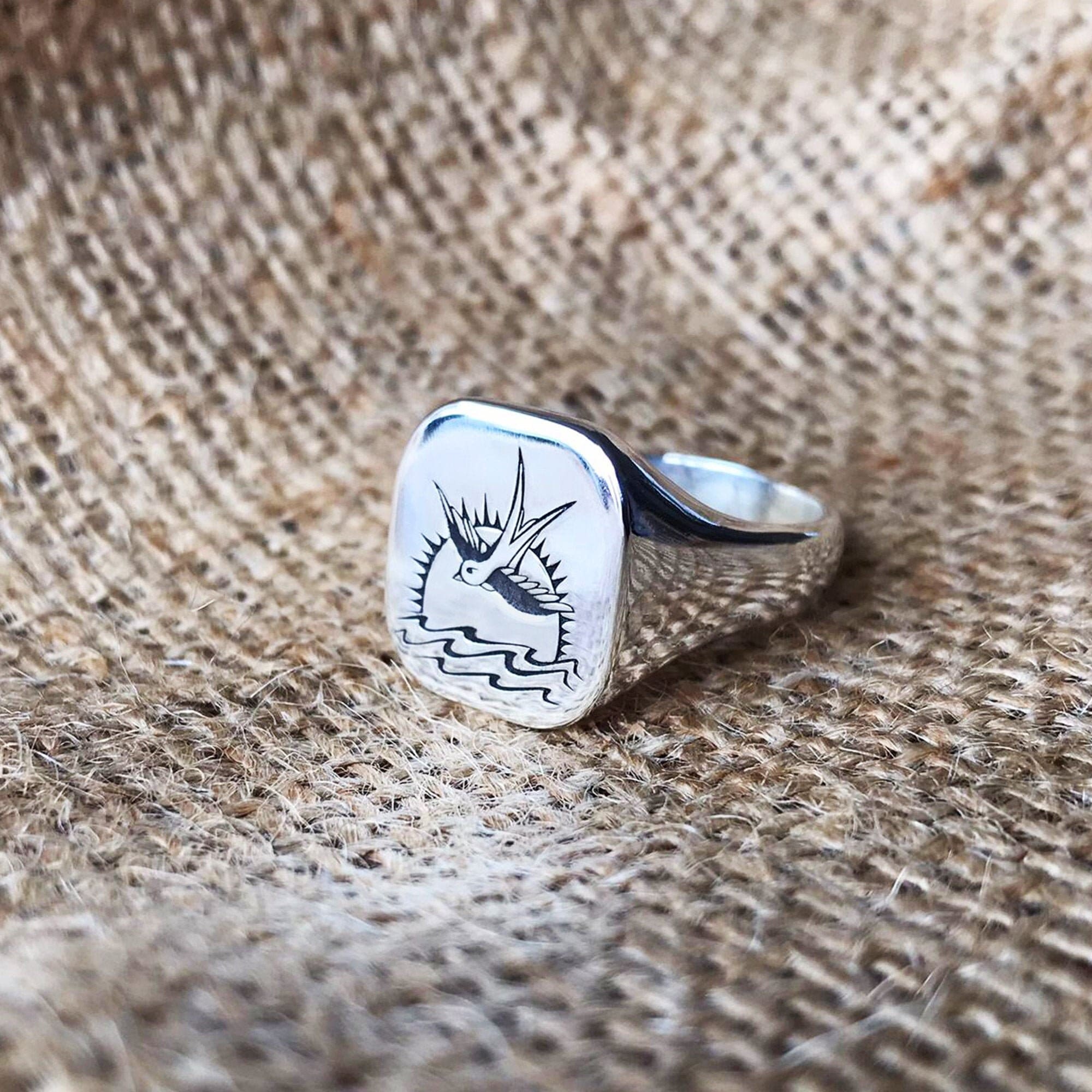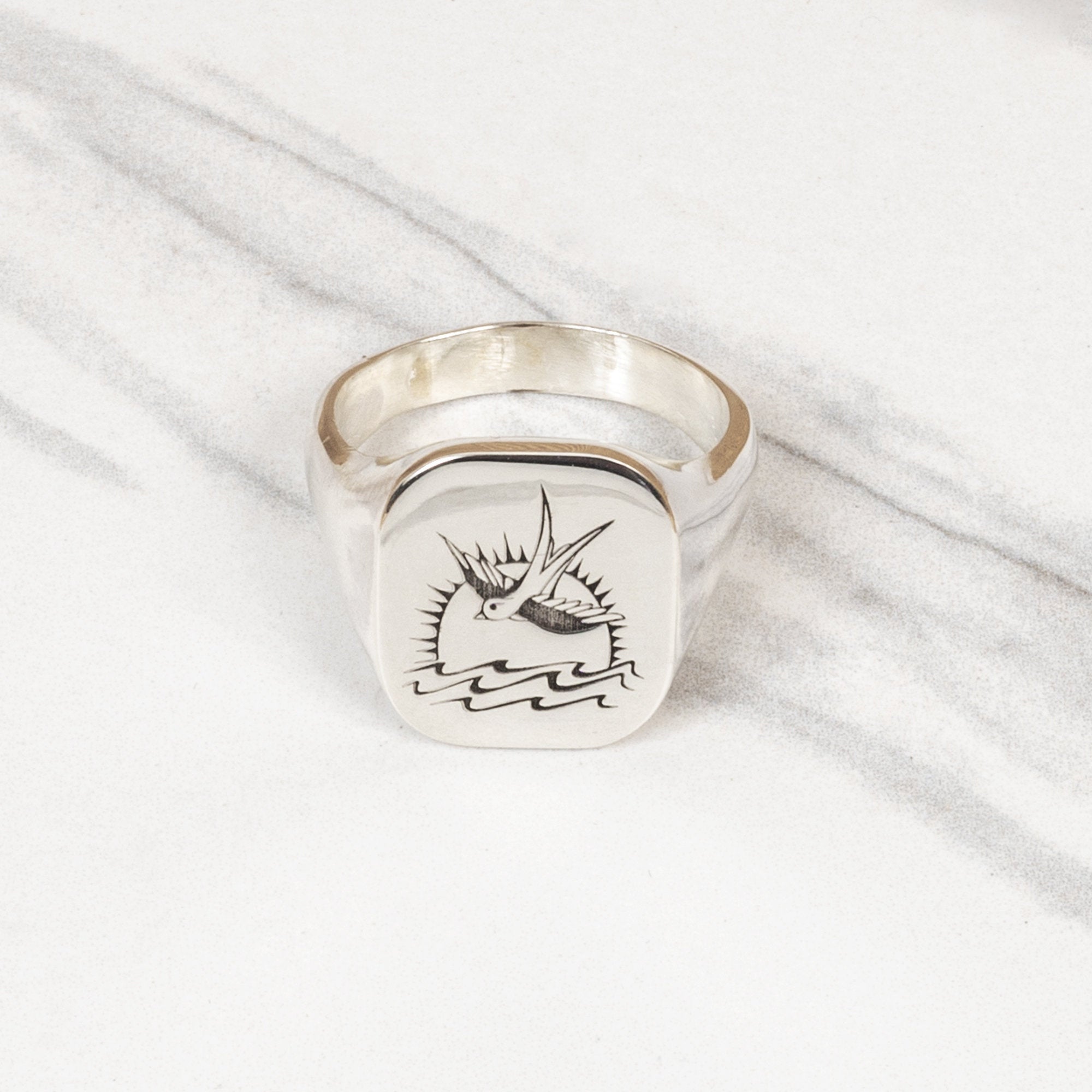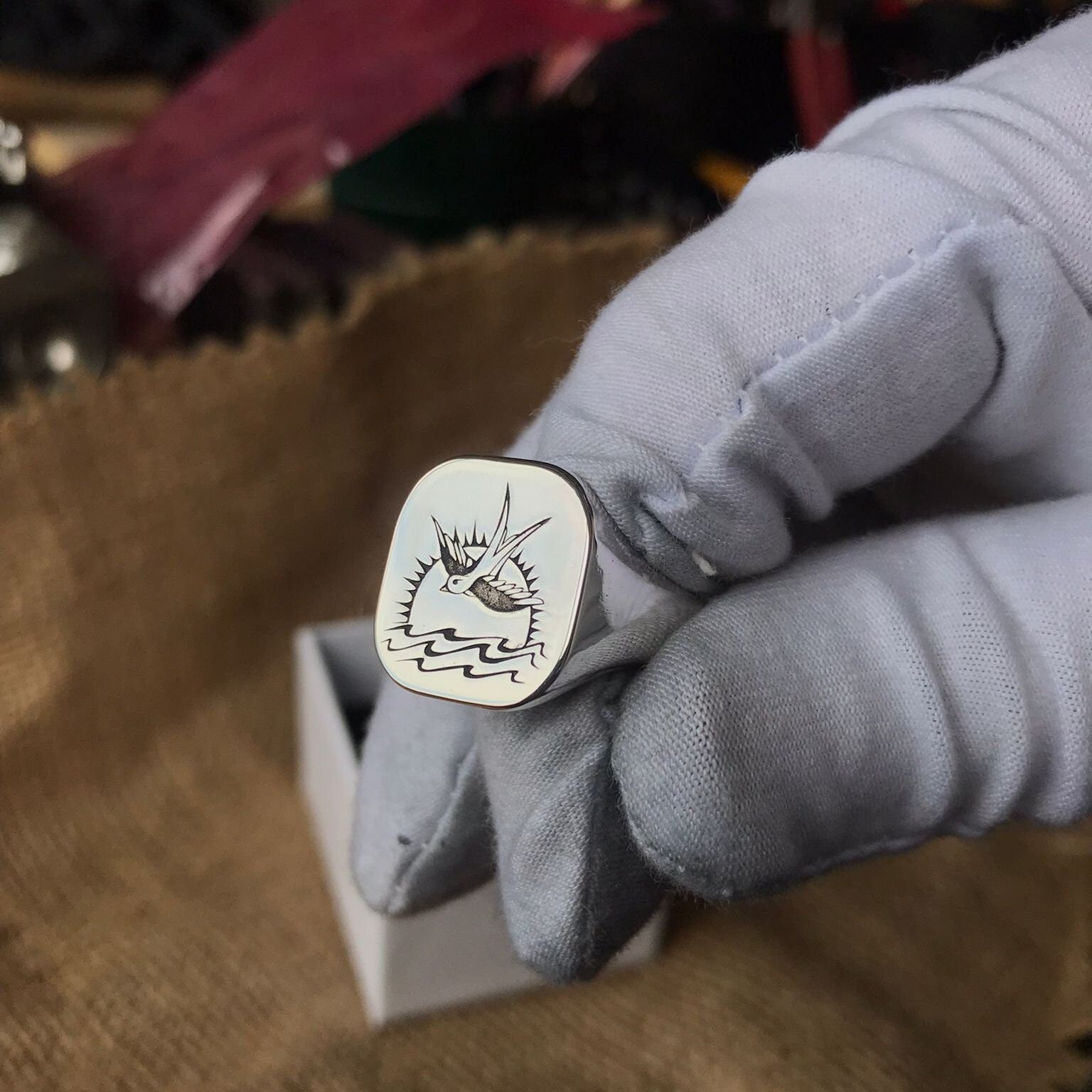 • Part of our classic Traditional Tattoo Flash collection, the Swallow Signet is inspired by old school tattoos.