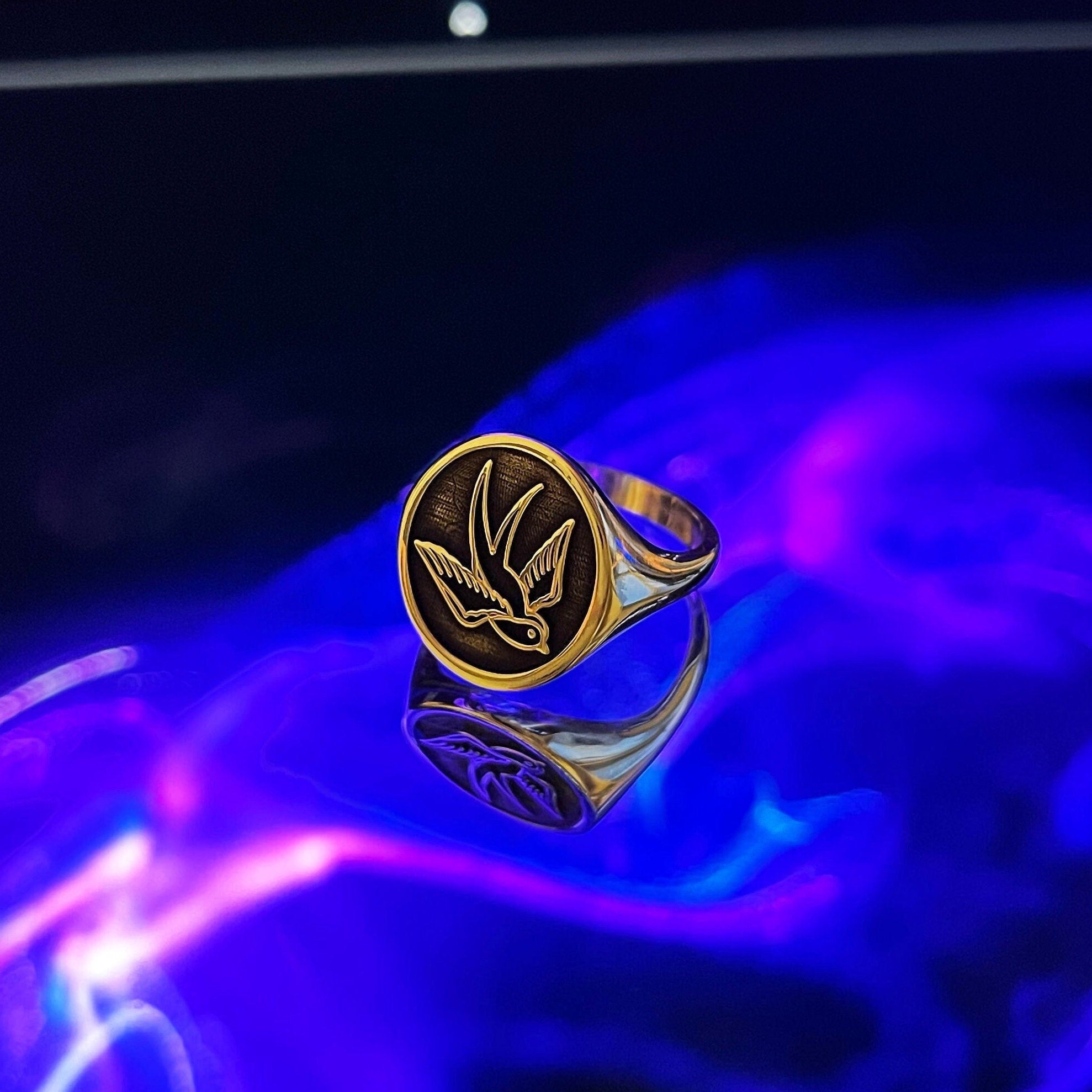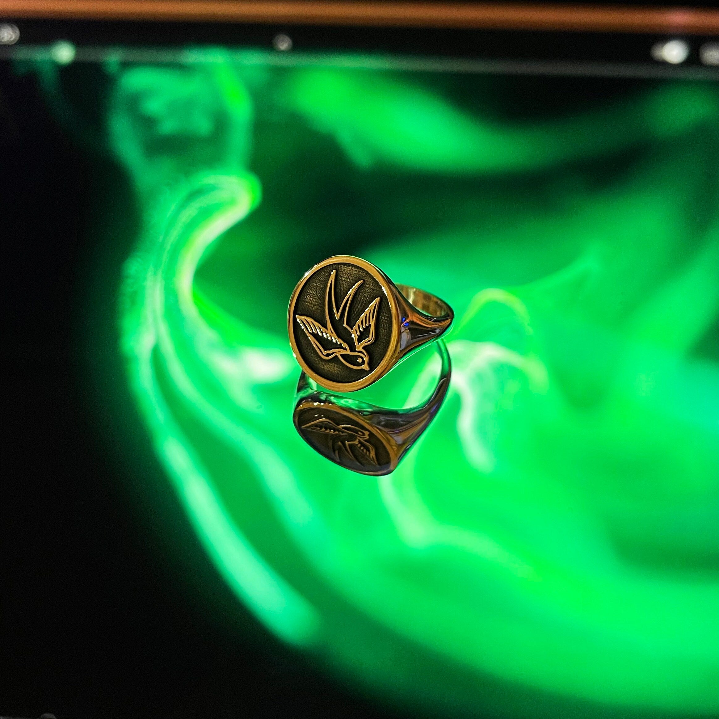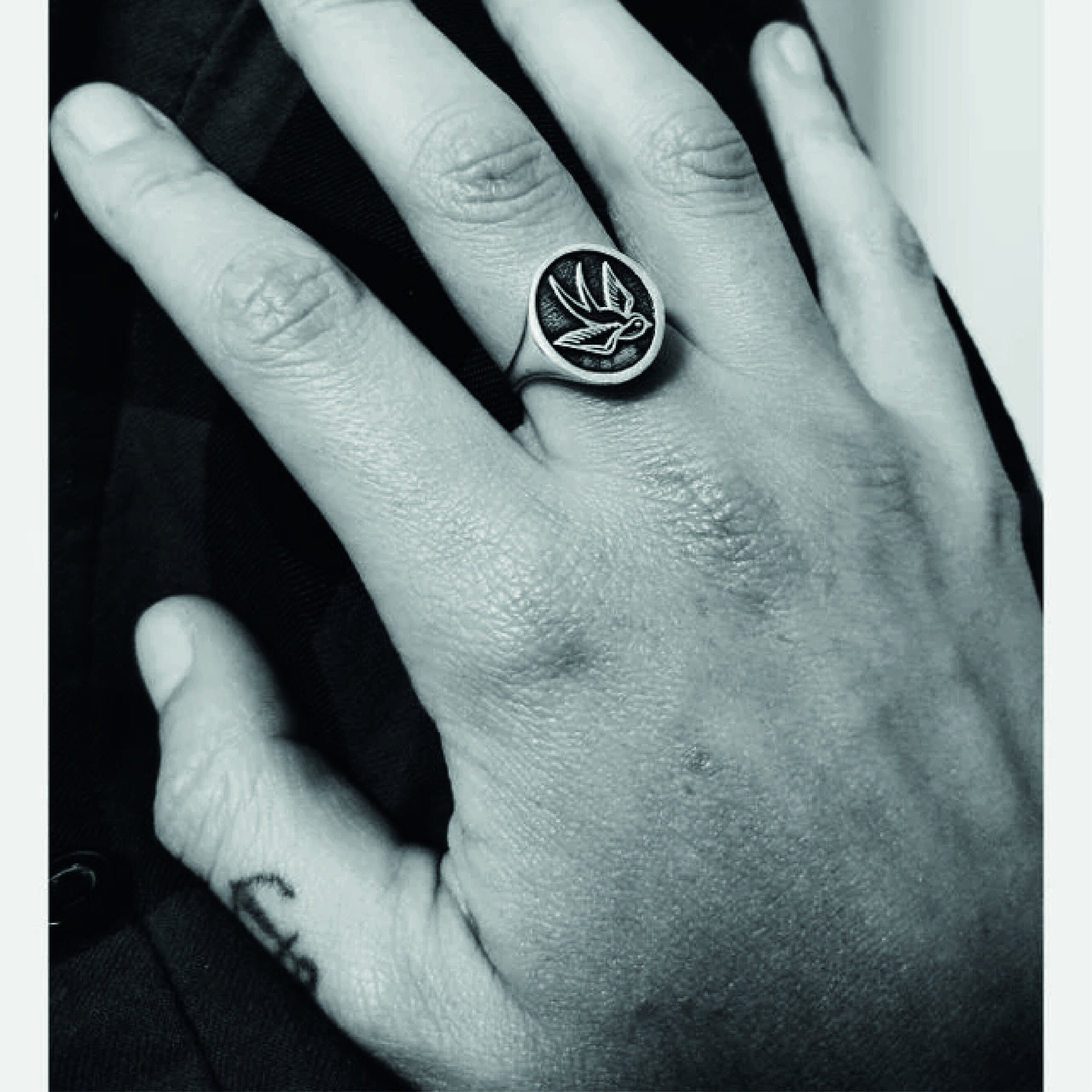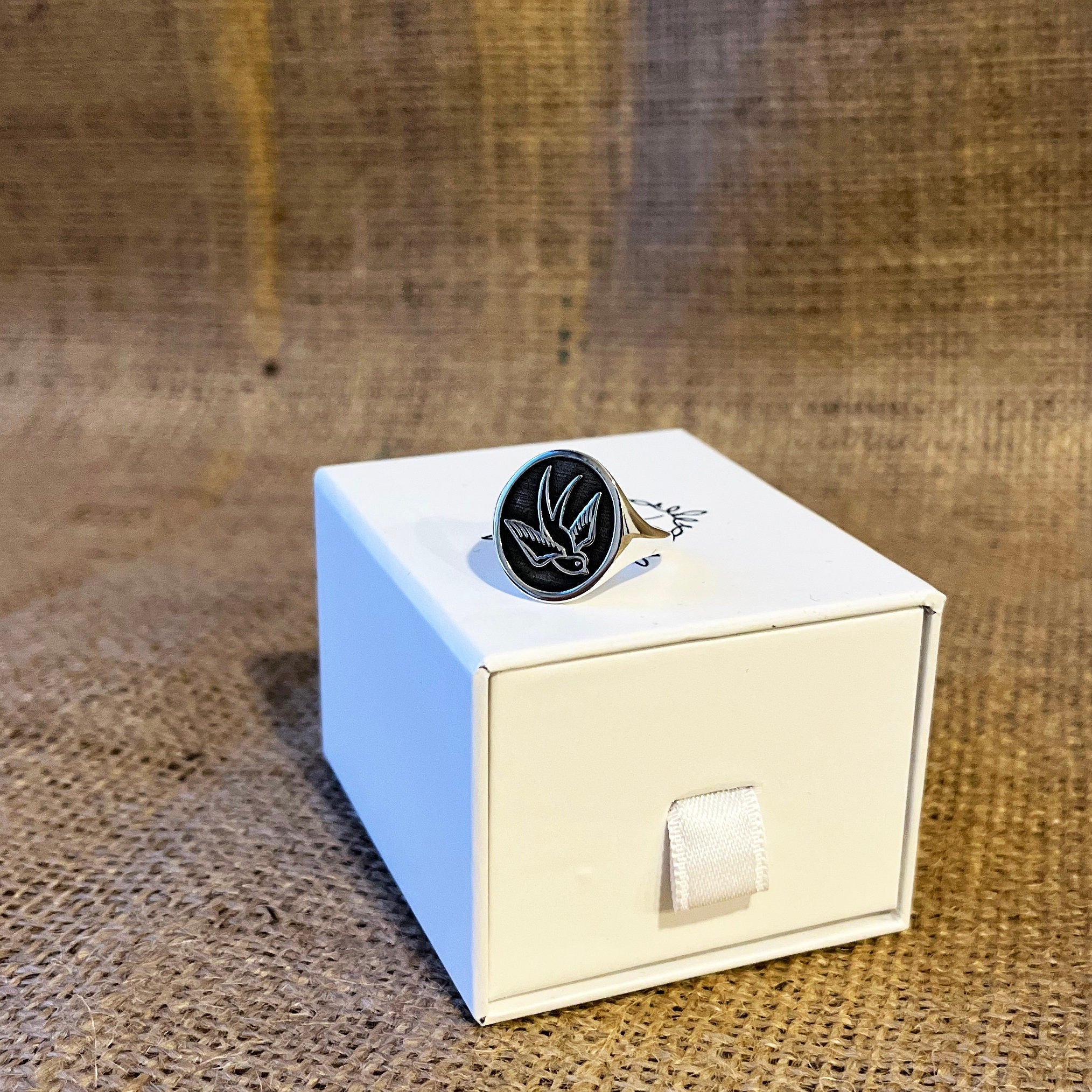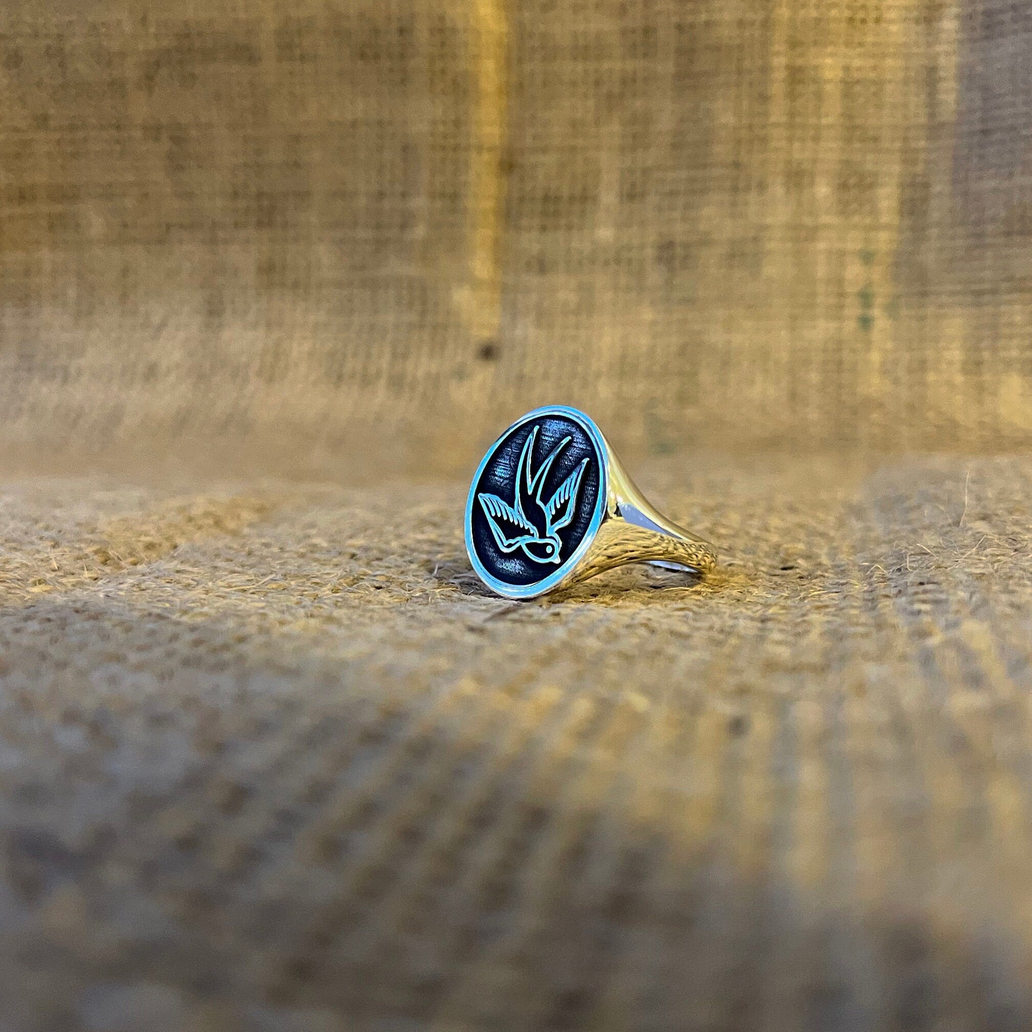 • Part of our classic Traditional Tattoo Flash collection, the Swallow Signet is inspired by old school tattoos.