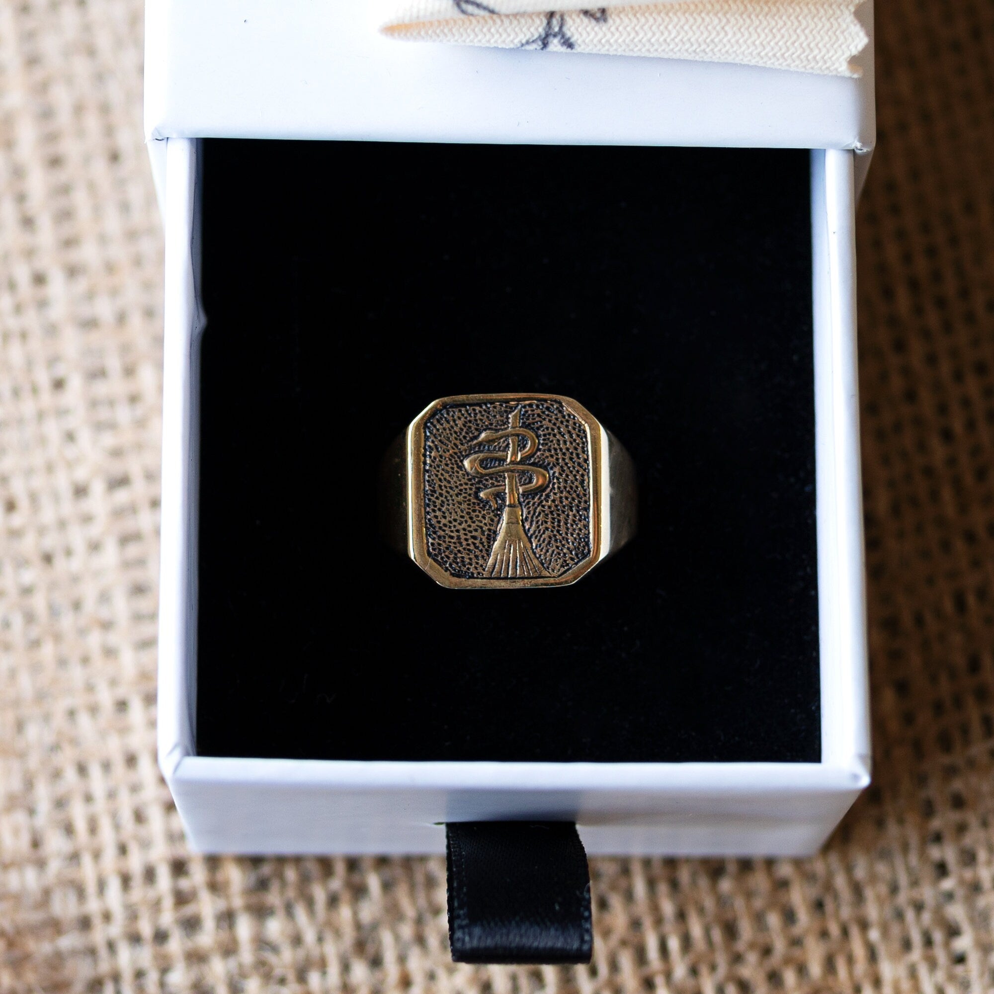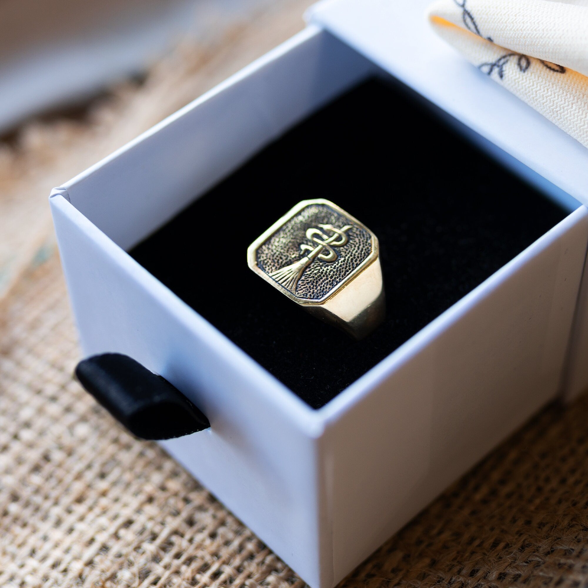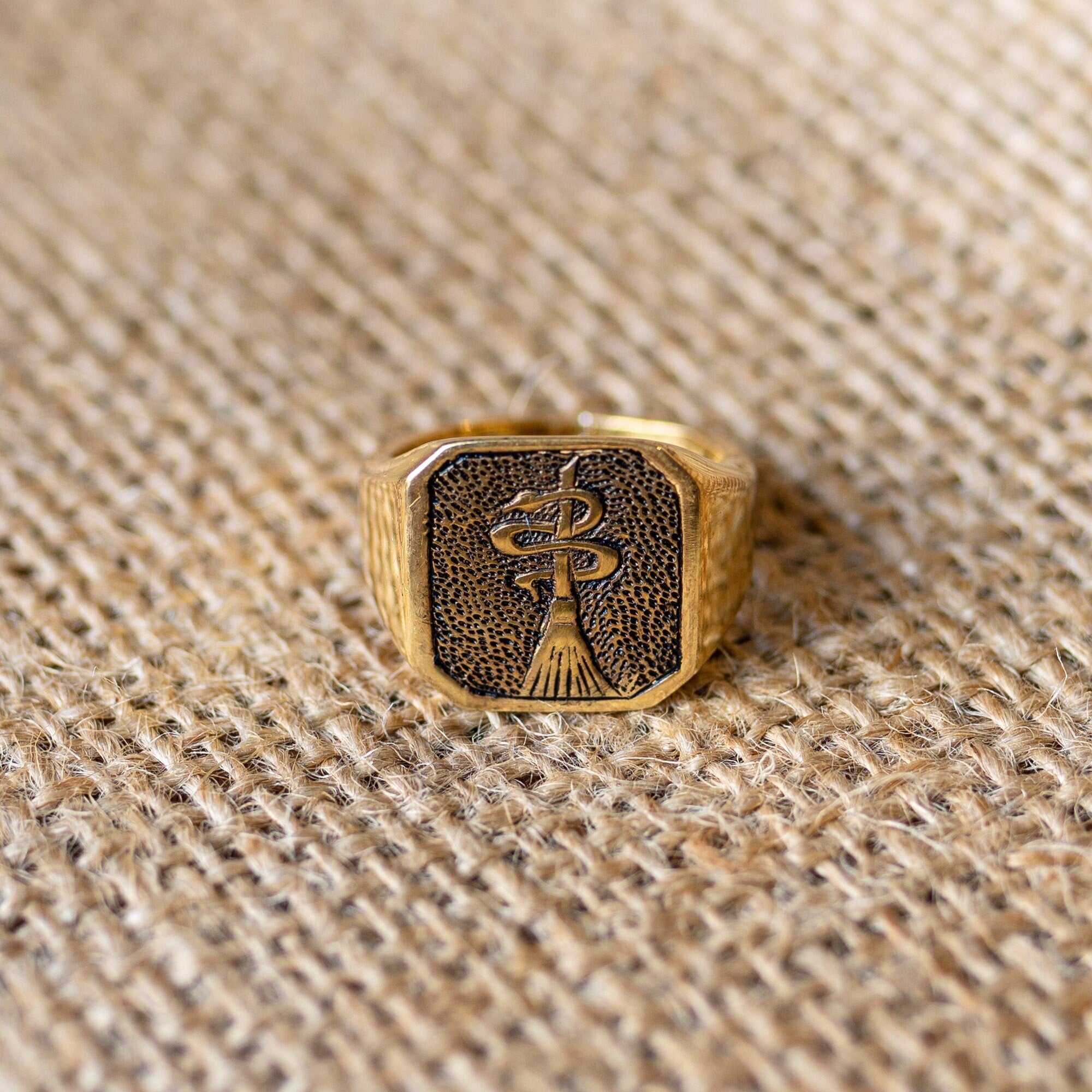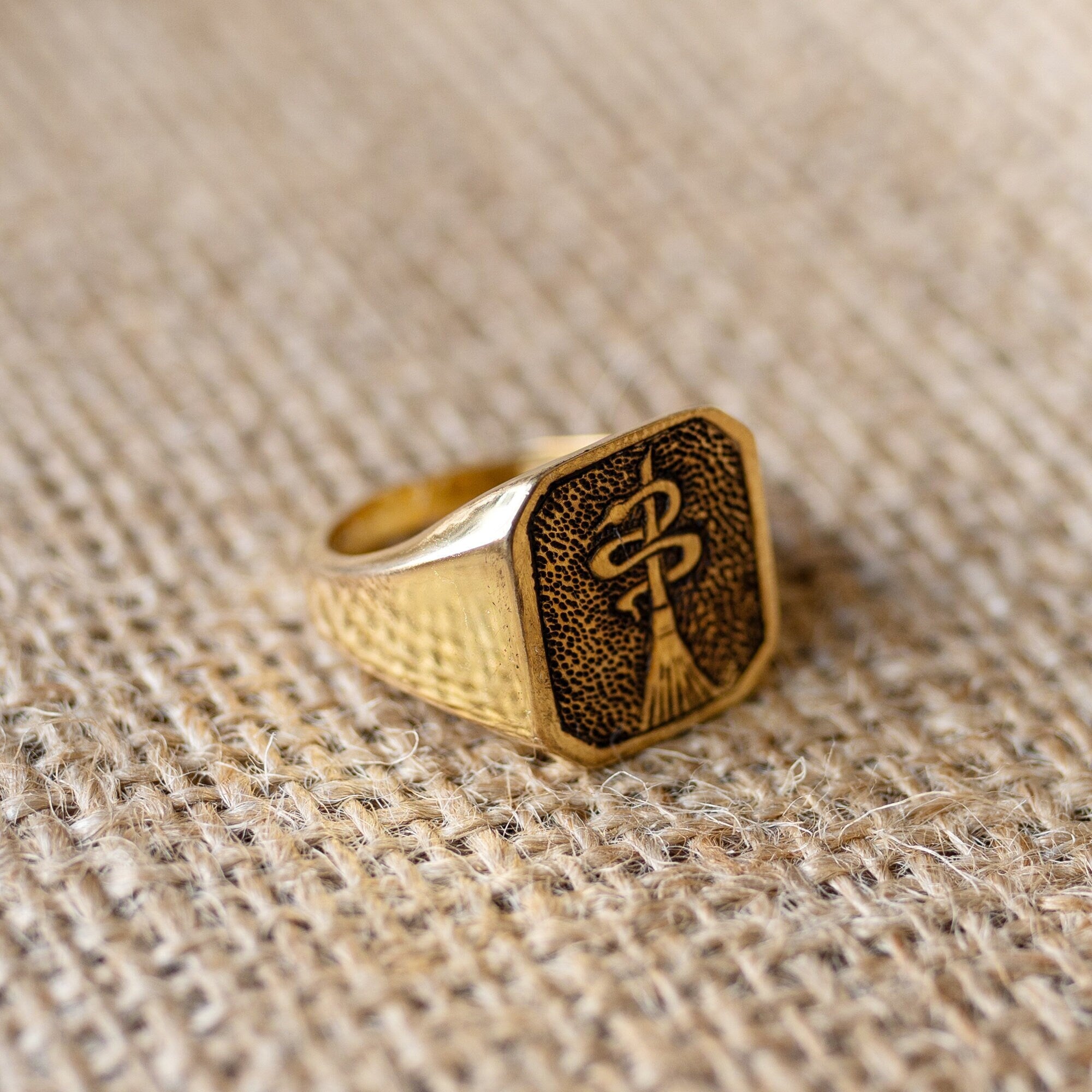 Witch Ring Sterling Silver, Halloween Gifts, Snake Signet Ring, Witch Broom Gold Filled Women Pinky Ring, Handmade Engraved Jewelry For Men
