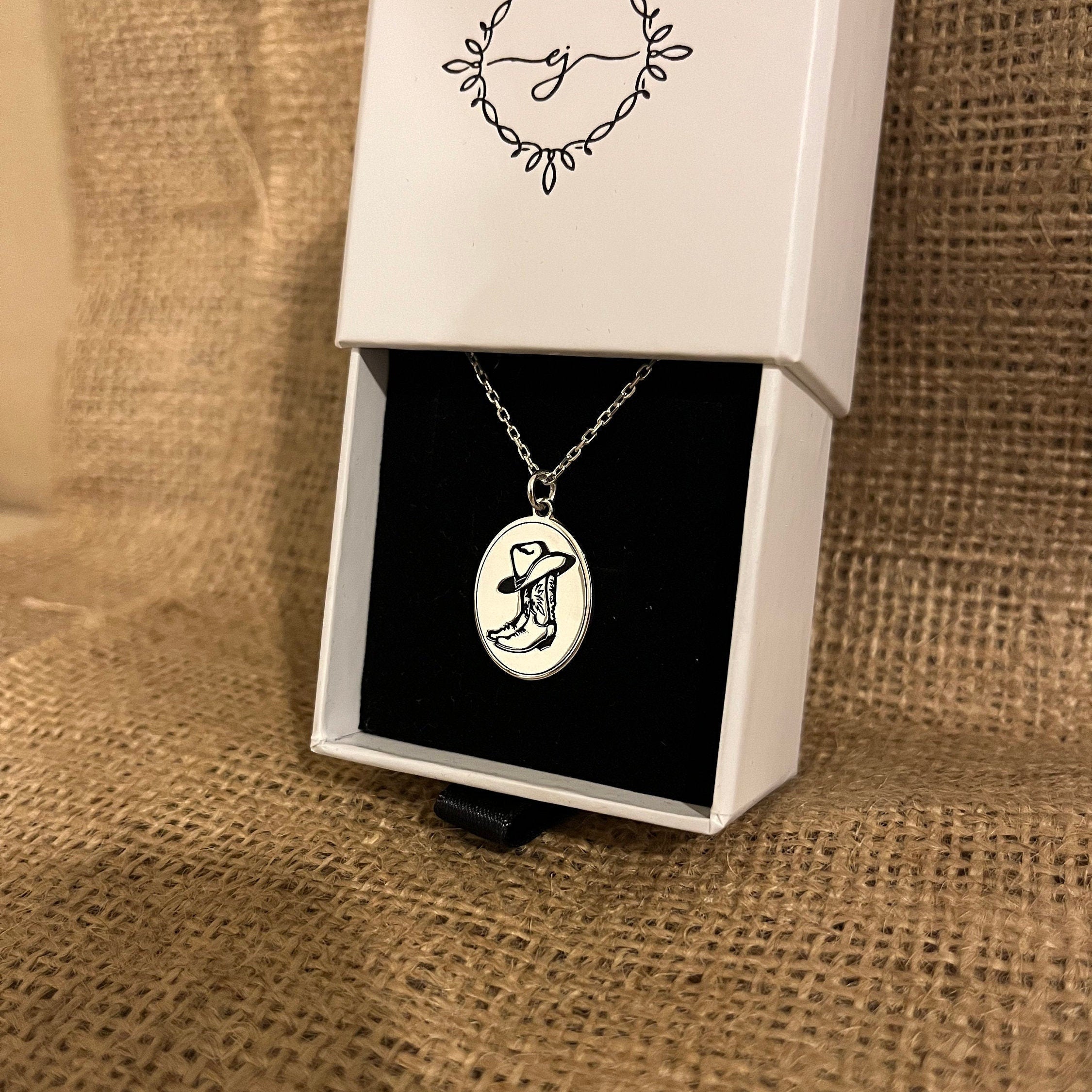 • This Cowboy Boot Oval Necklace is stylish and pretty ideal for everyday use. Engraving details of 925k handmade silver necklace are very detailed and eye-catching. The ring is coated with rodium to emphasize the details of engraving •