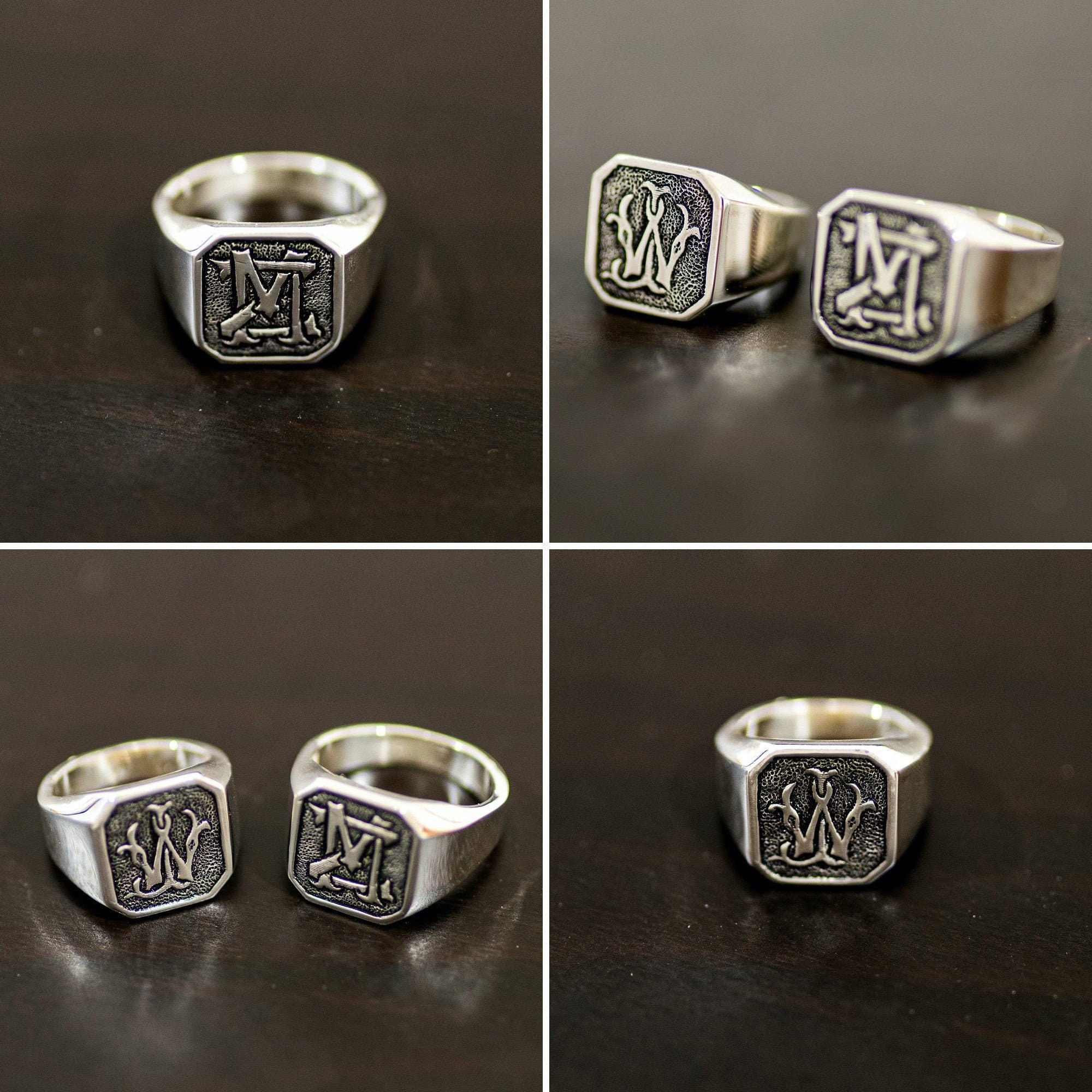 • This Two Initial Monogram Signet ring is stylish and pretty ideal for everyday use. Engraving details of 925k handmade silver ring are very detailed and eye-catching. The ring is coated with rodium to emphasize the details of handmade engraving. An unforgettable gift for mother's day •