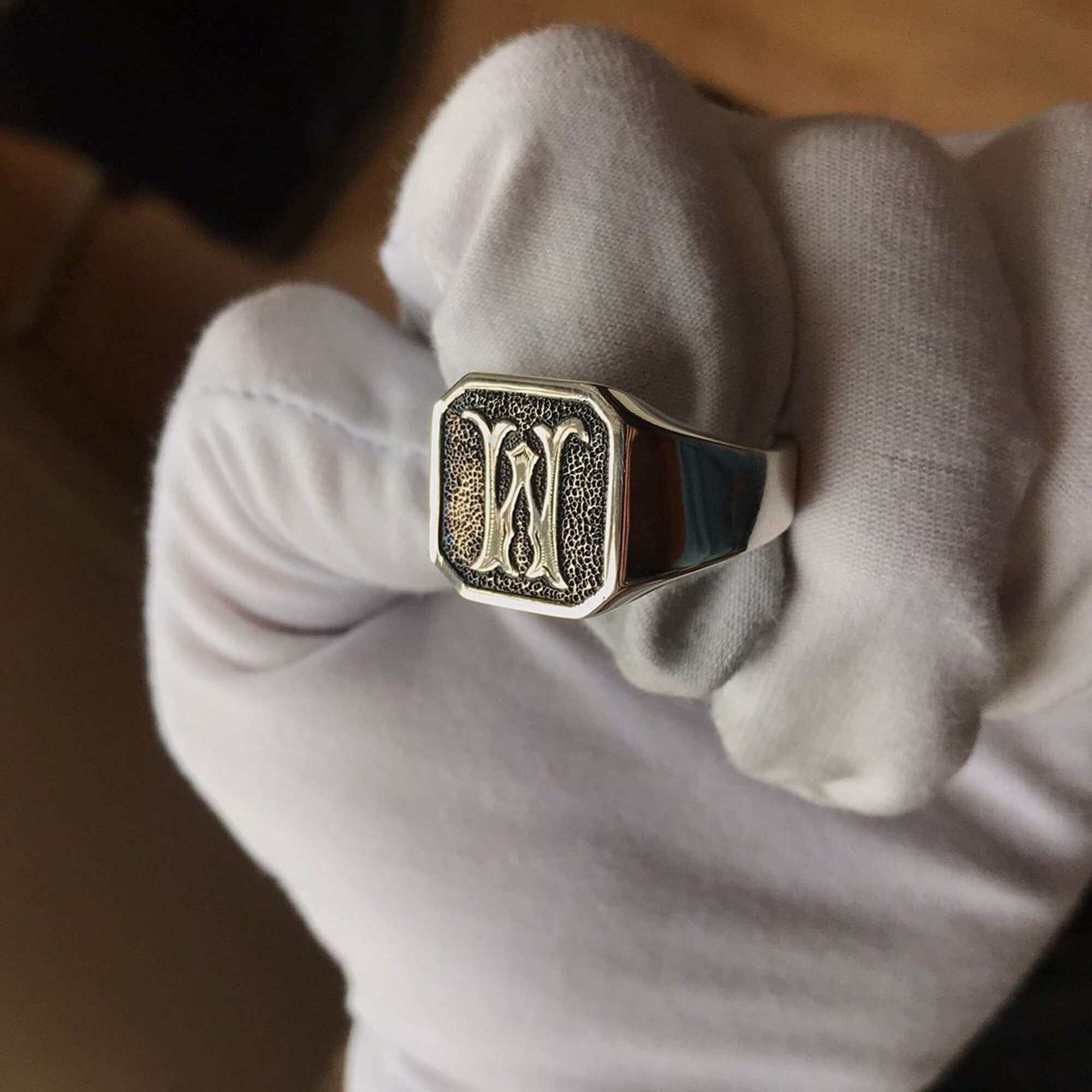Hand Engraved Monogram Signet Ring