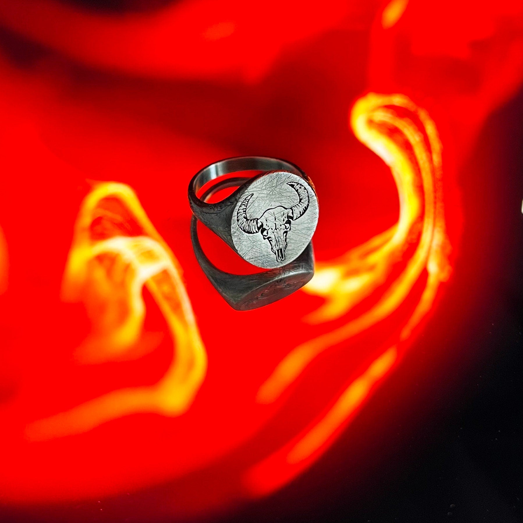 • This Vintage Bull Skull Signet ring is stylish and pretty ideal for everyday use. Engraving details of 925k handmade silver ring are very detailed and eye-catching. The ring is coated with rodium to emphasize the details of handmade engraving •