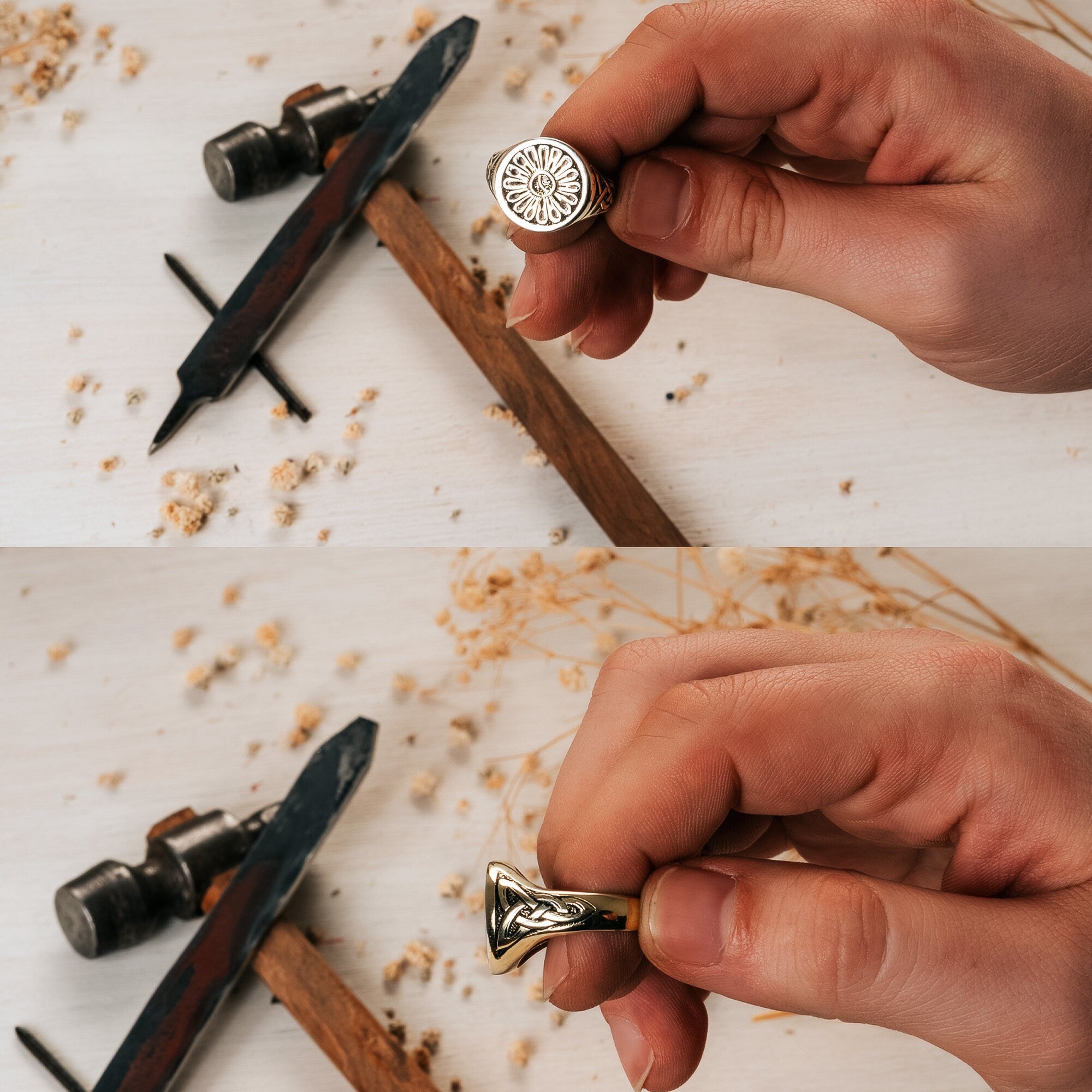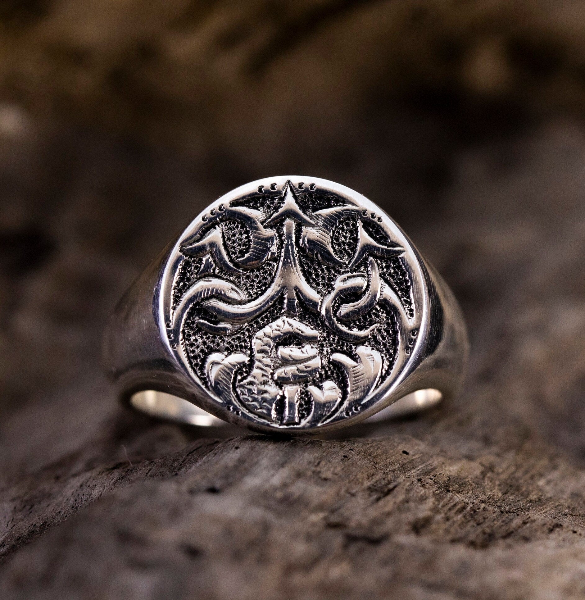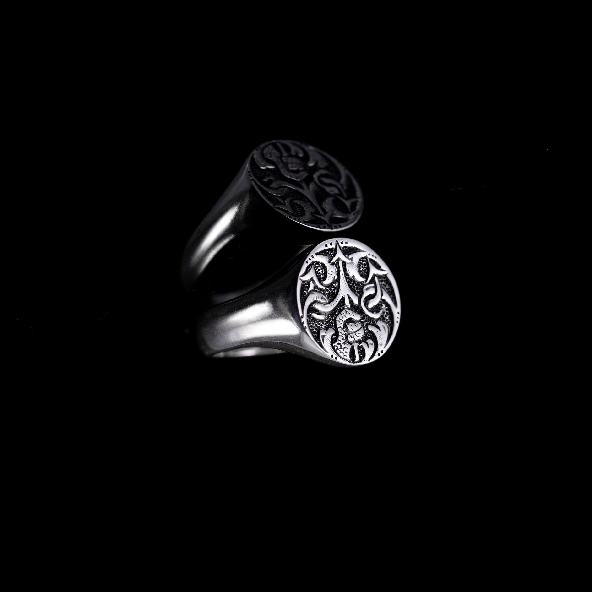 Poseidon Trident Signet Ring, God of The Sea Pinky Ring, Ancient Greek Mythology Jewelry, Roman God Neptune Ring, Hand Engraved Gift for Him
