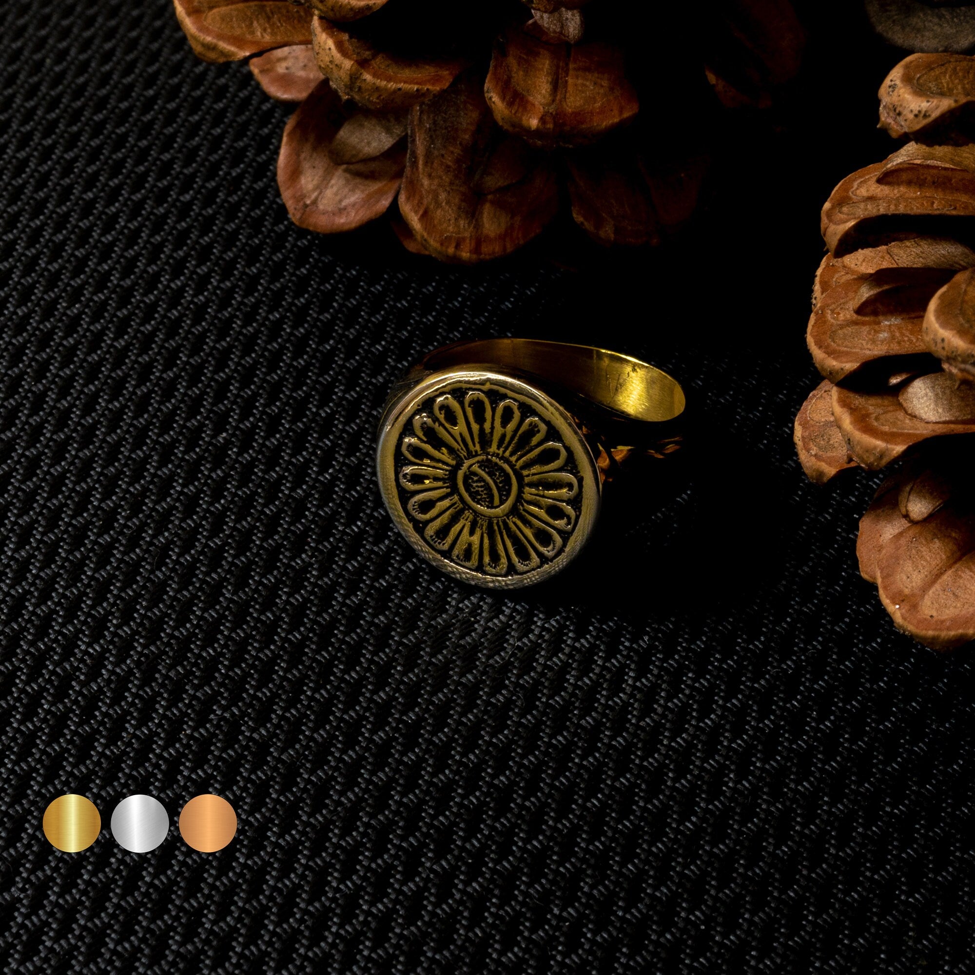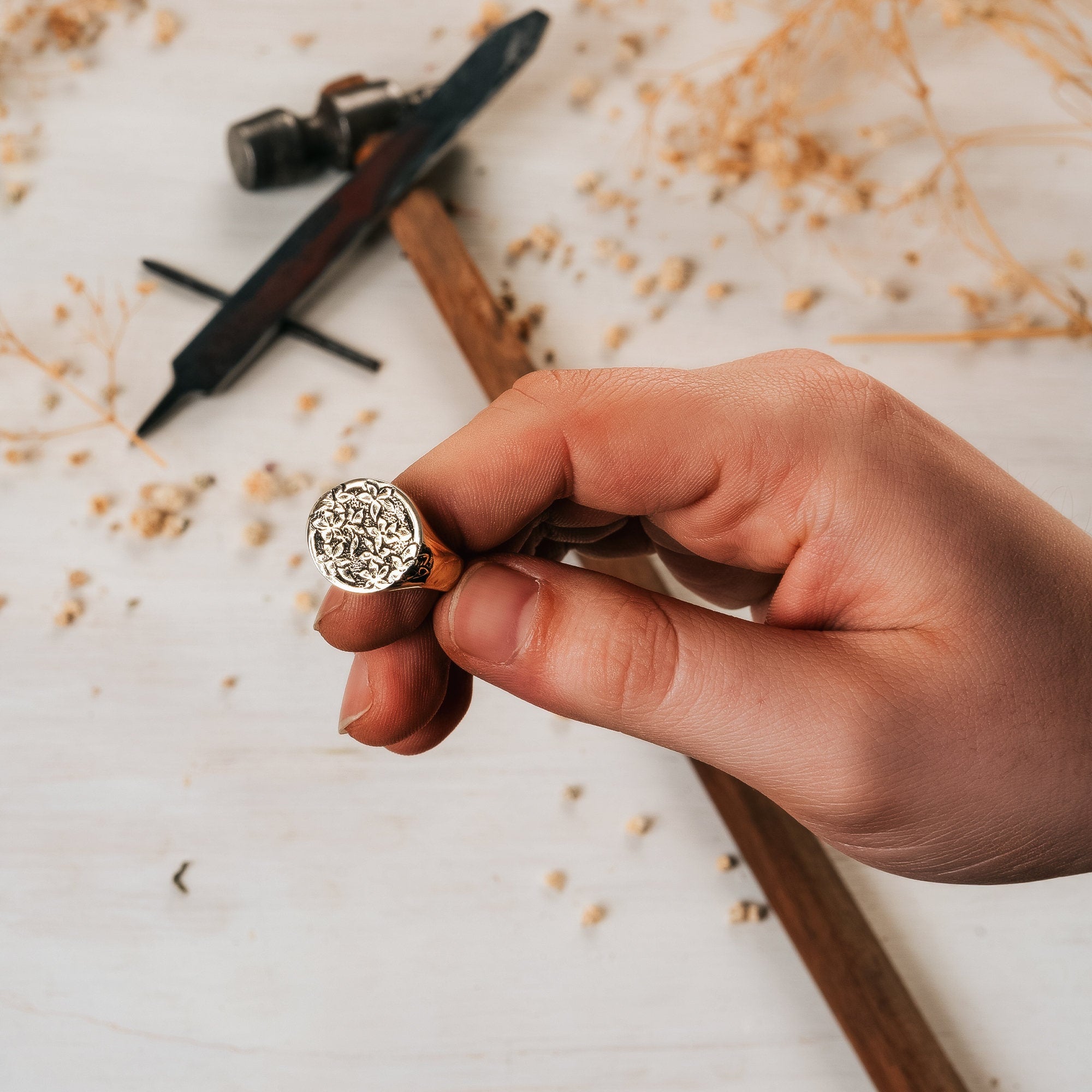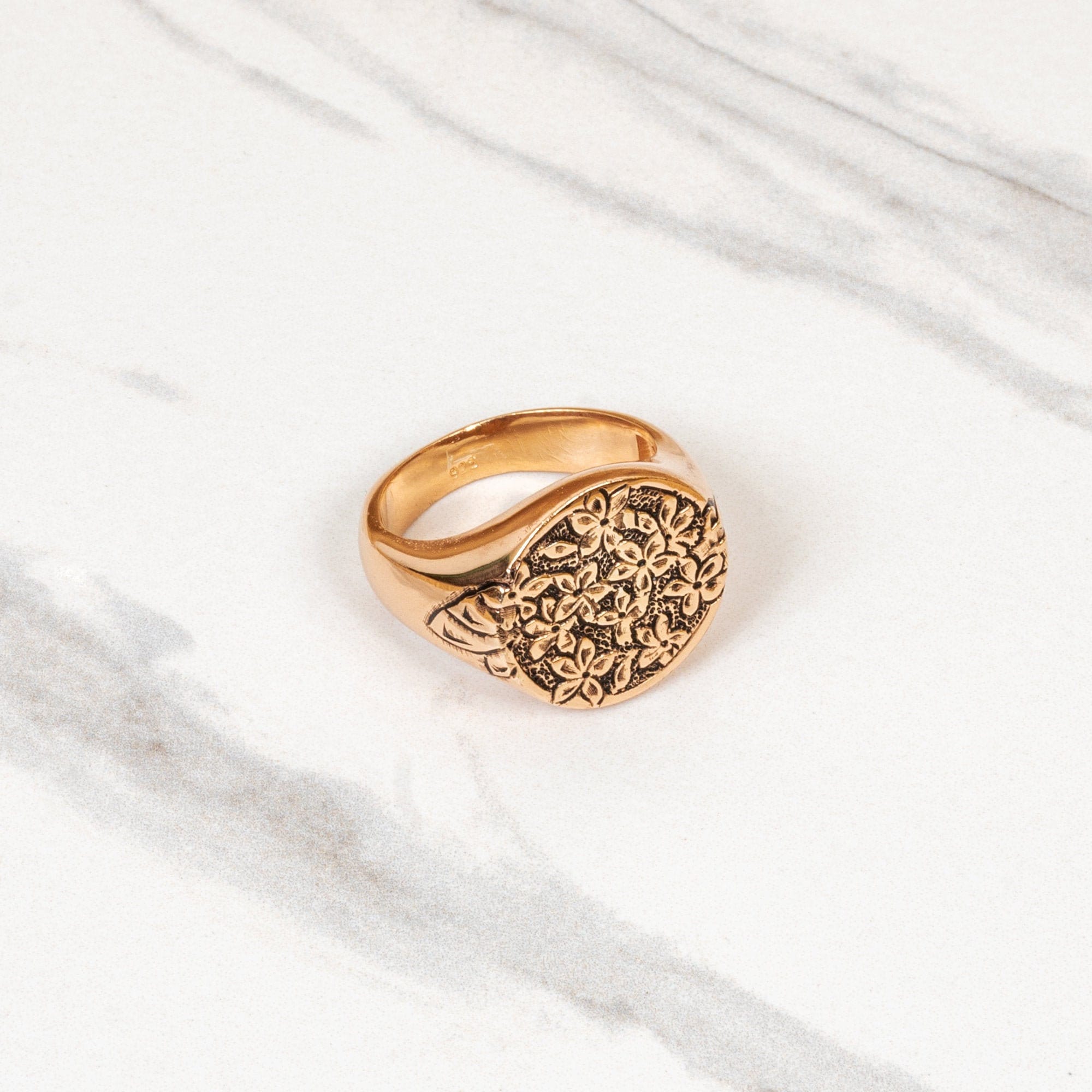Ivy Engraved Signet Ring, Wild Flower Pinky Ring Women