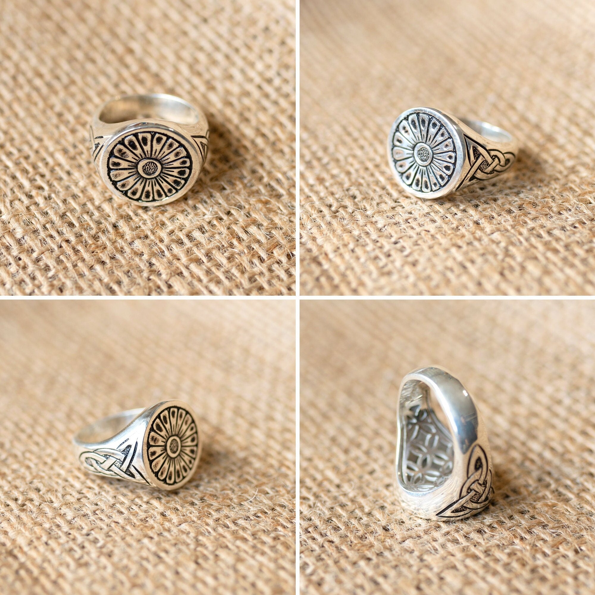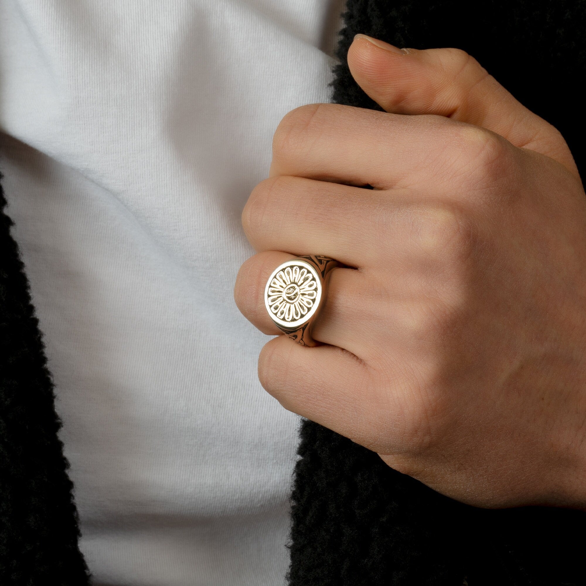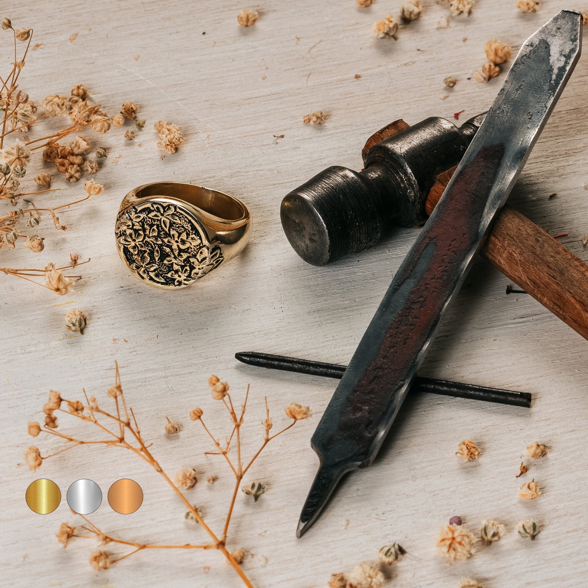 Ivy Engraved Signet Ring, Wild Flower Pinky Ring Women