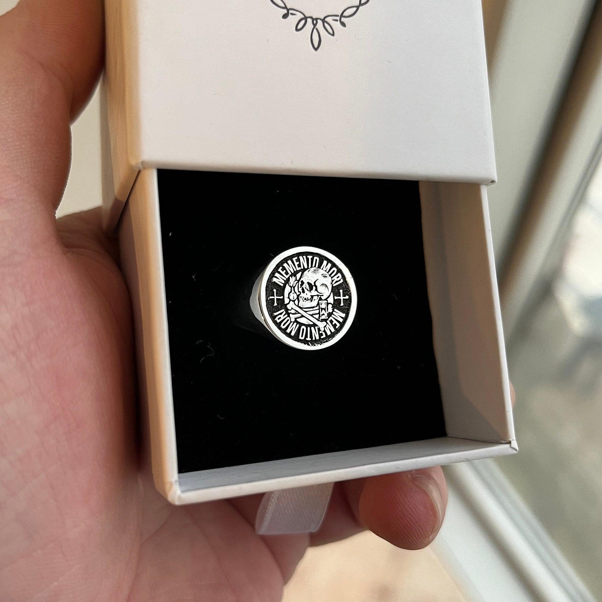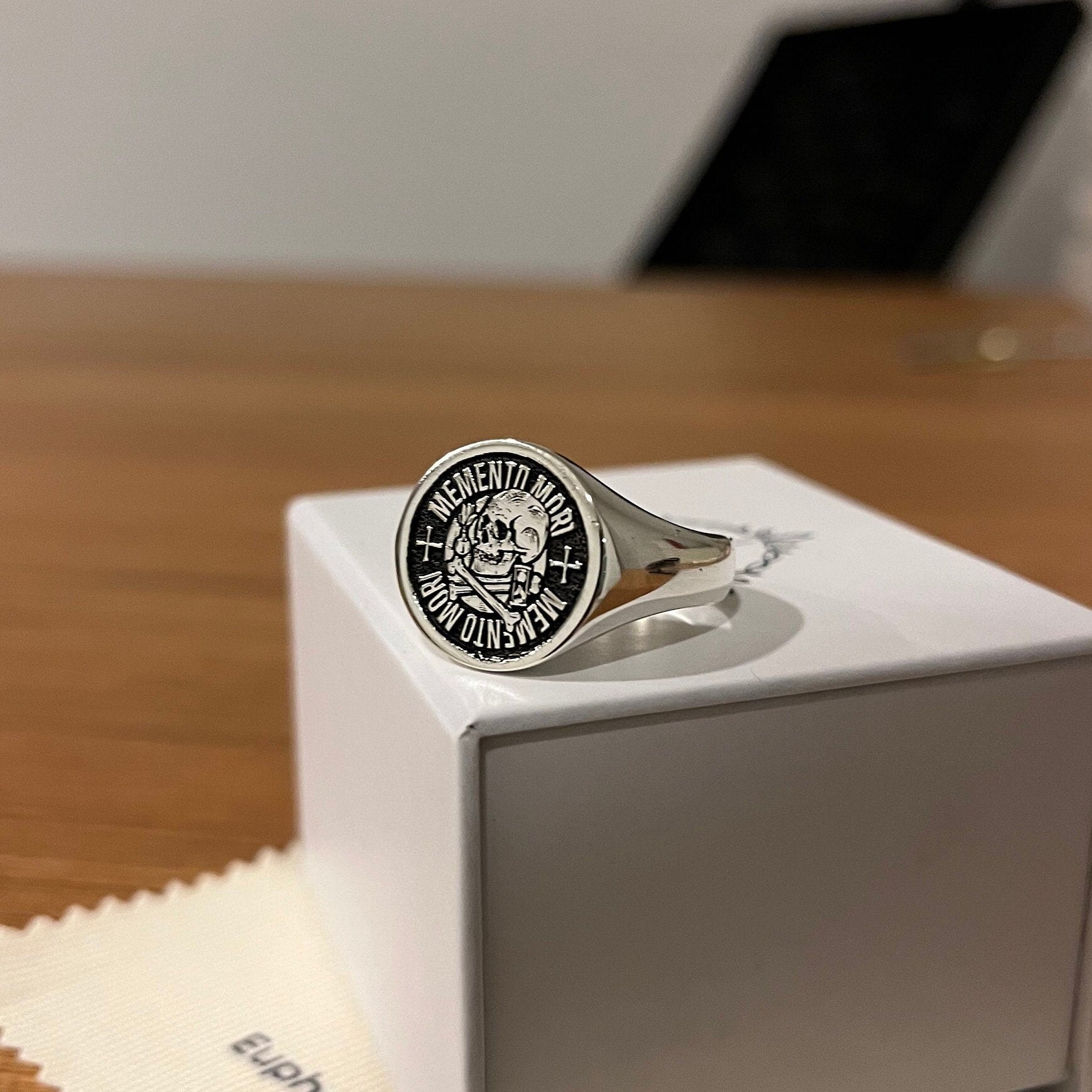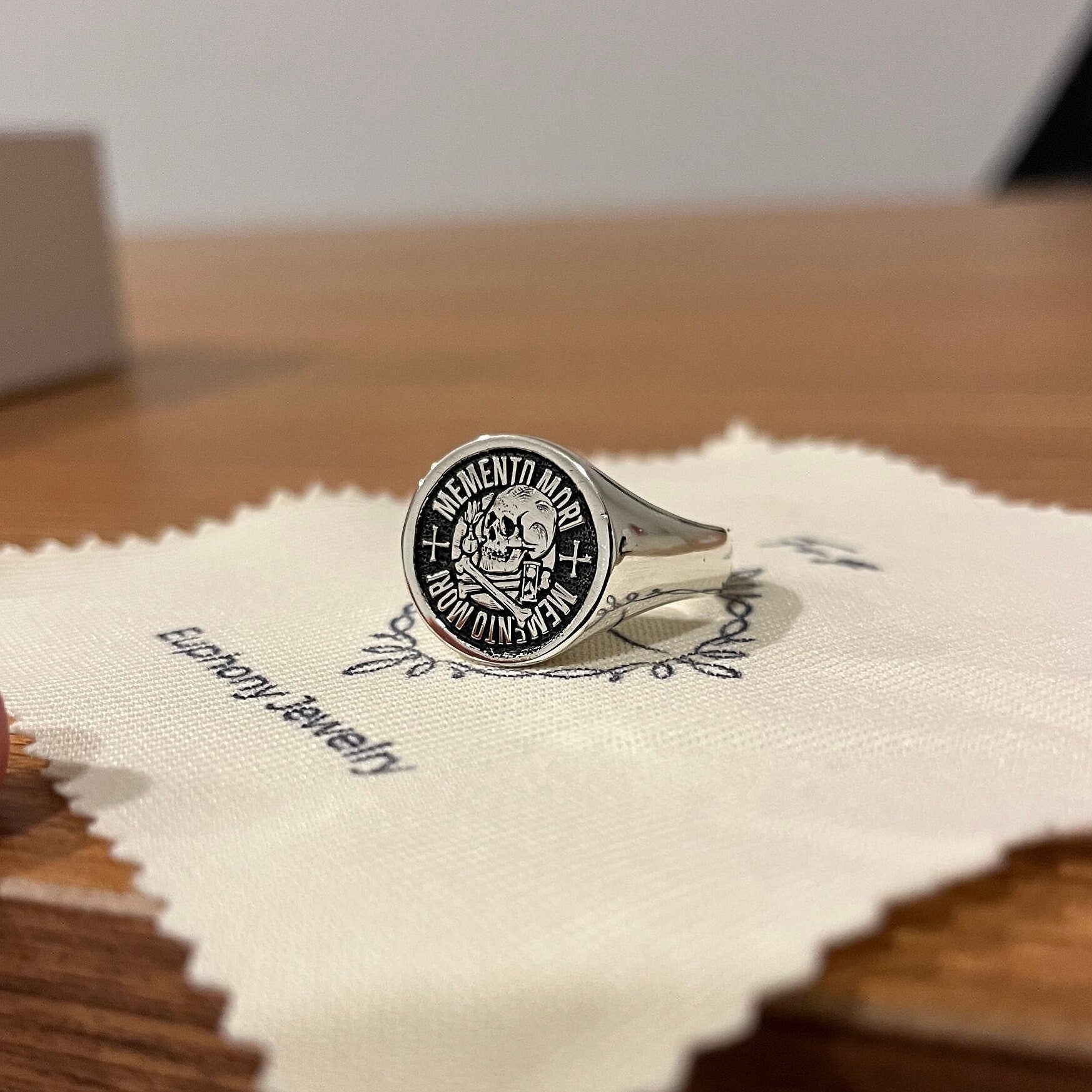 Memento Mori Signet Ring, Skull Pinky Ring, Silver Signet Ring, Gothic Mens Signet Ring, Stoic Ring, Biker Signet Ring, Memento Mori Jewelry