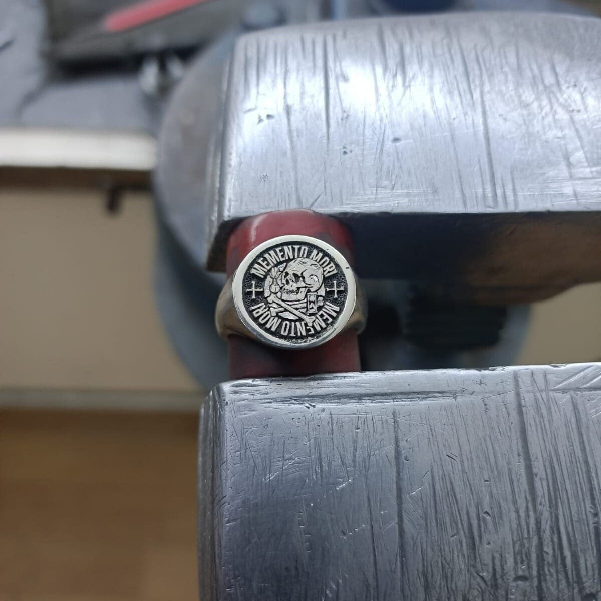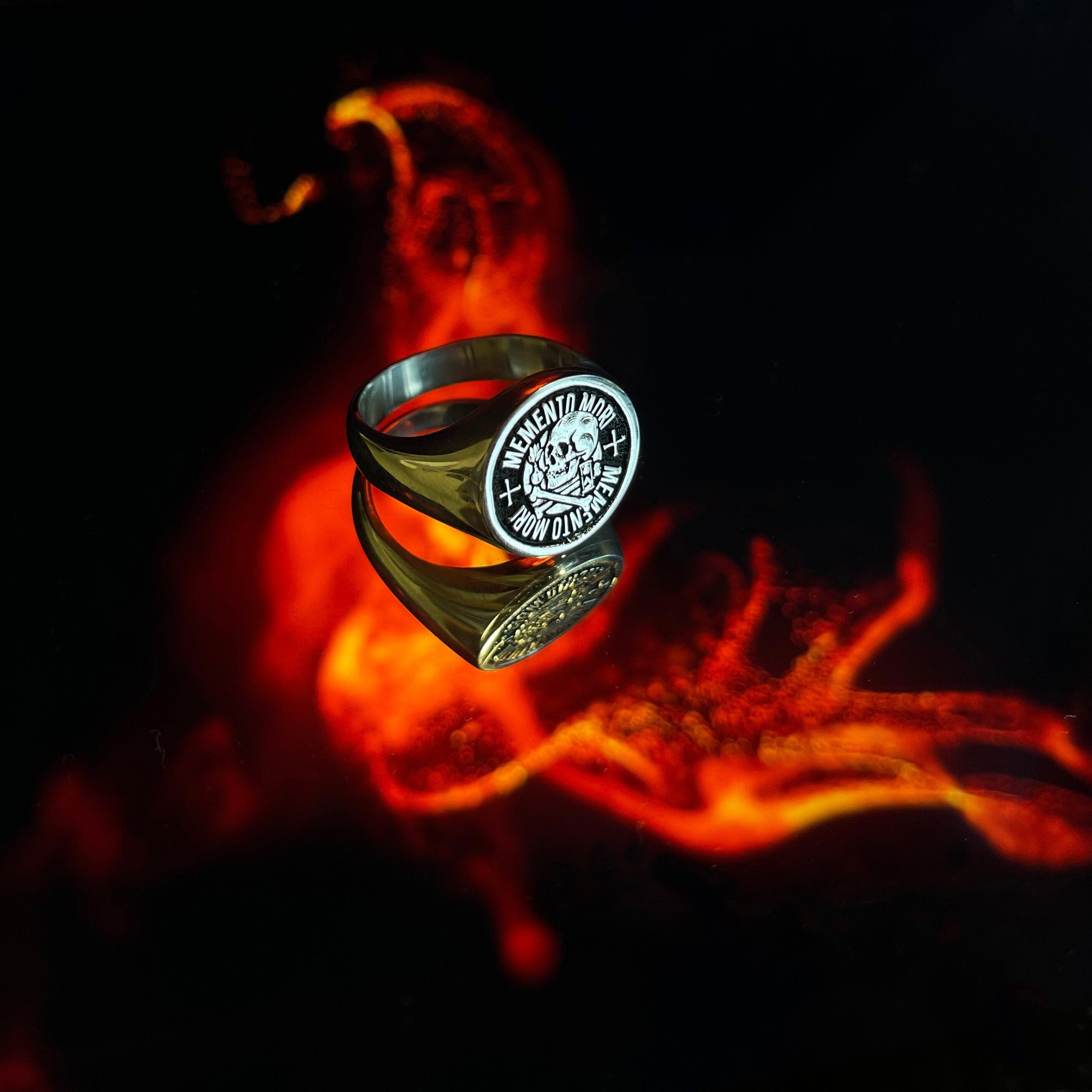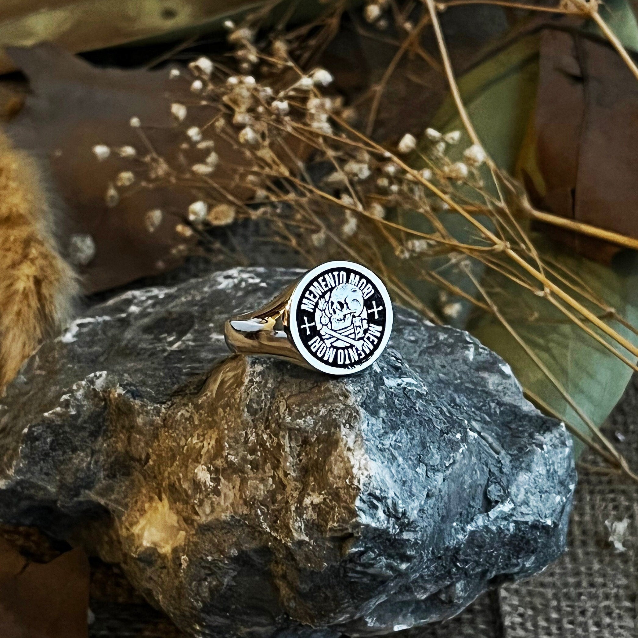 Memento Mori Signet Ring, Skull Pinky Ring, Silver Signet Ring, Gothic Mens Signet Ring, Stoic Ring, Biker Signet Ring, Memento Mori Jewelry