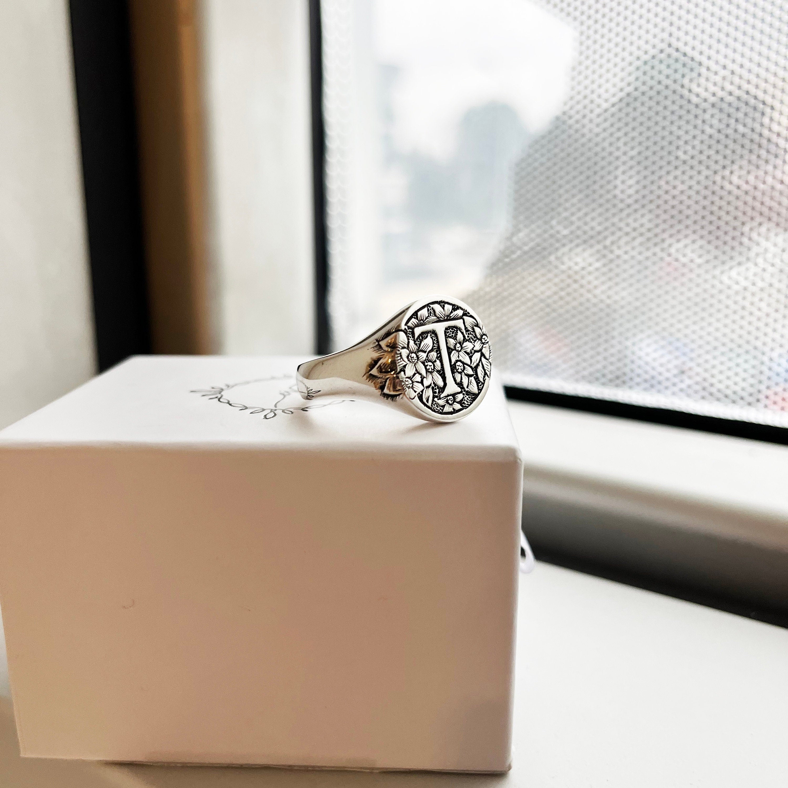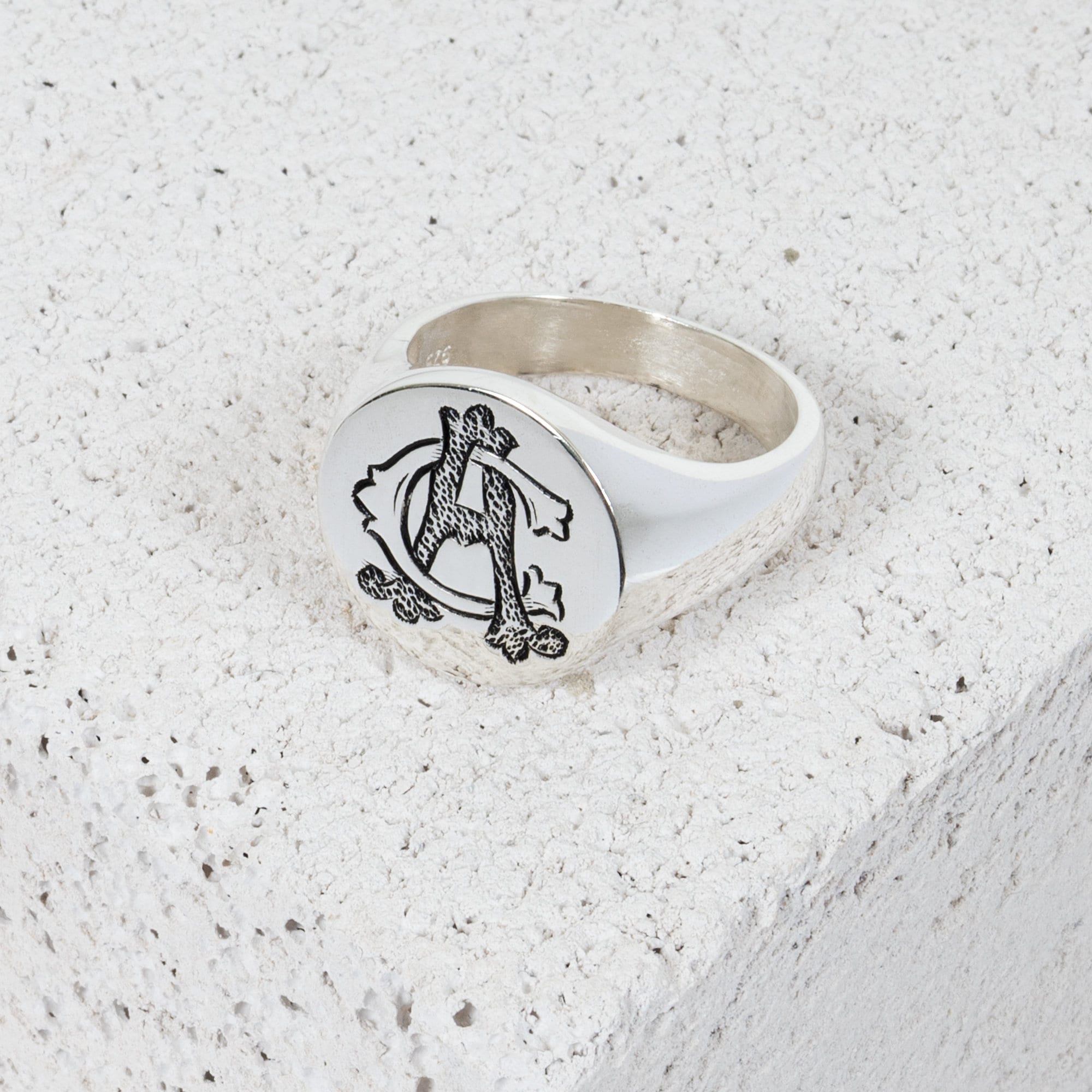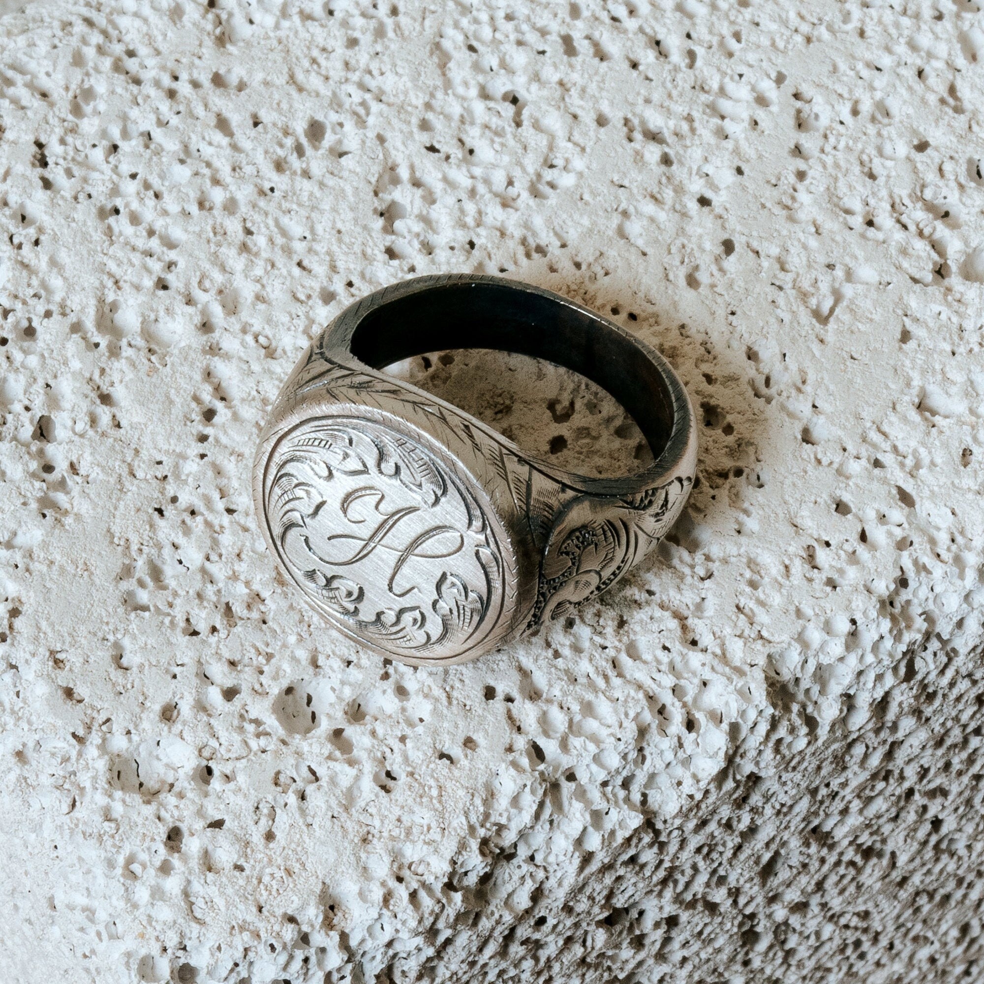 Custom Engraved Oval Signet Ring, Custom Silver Pinky Ring