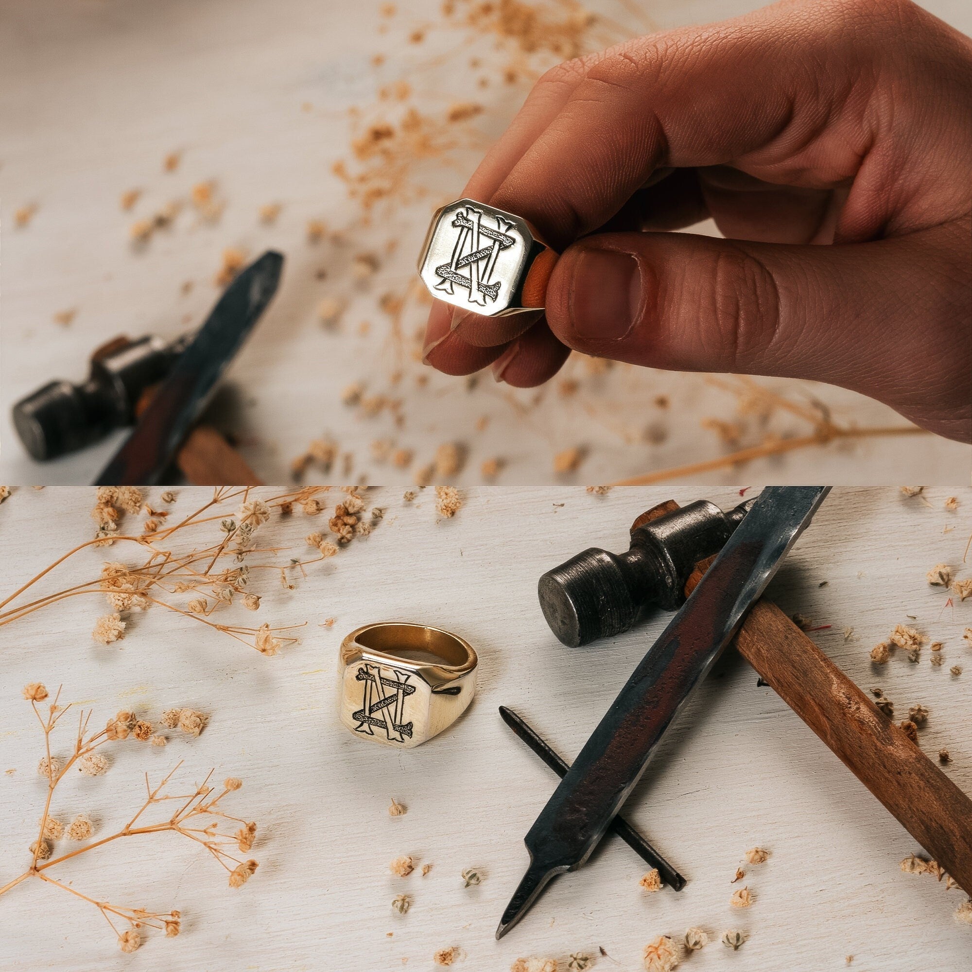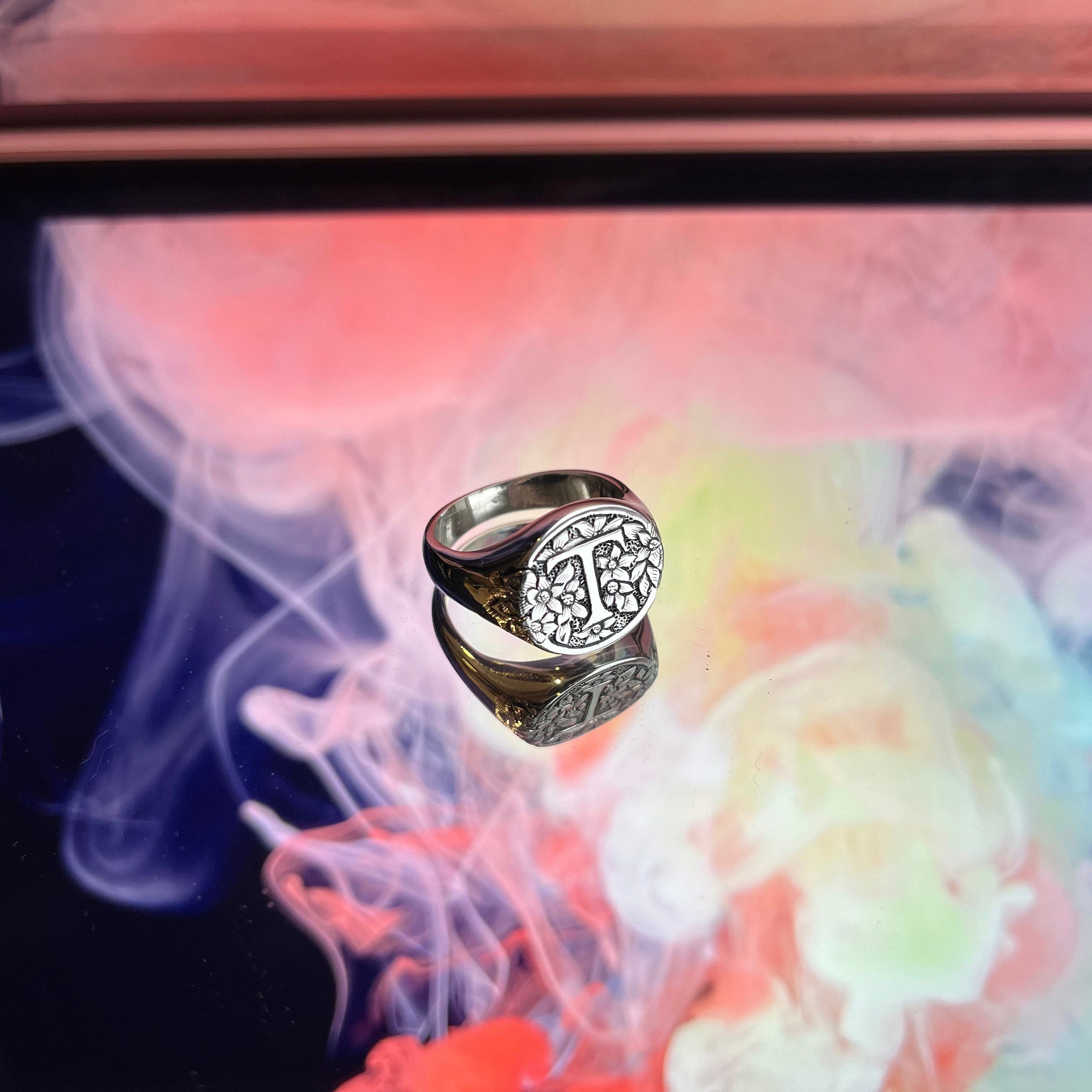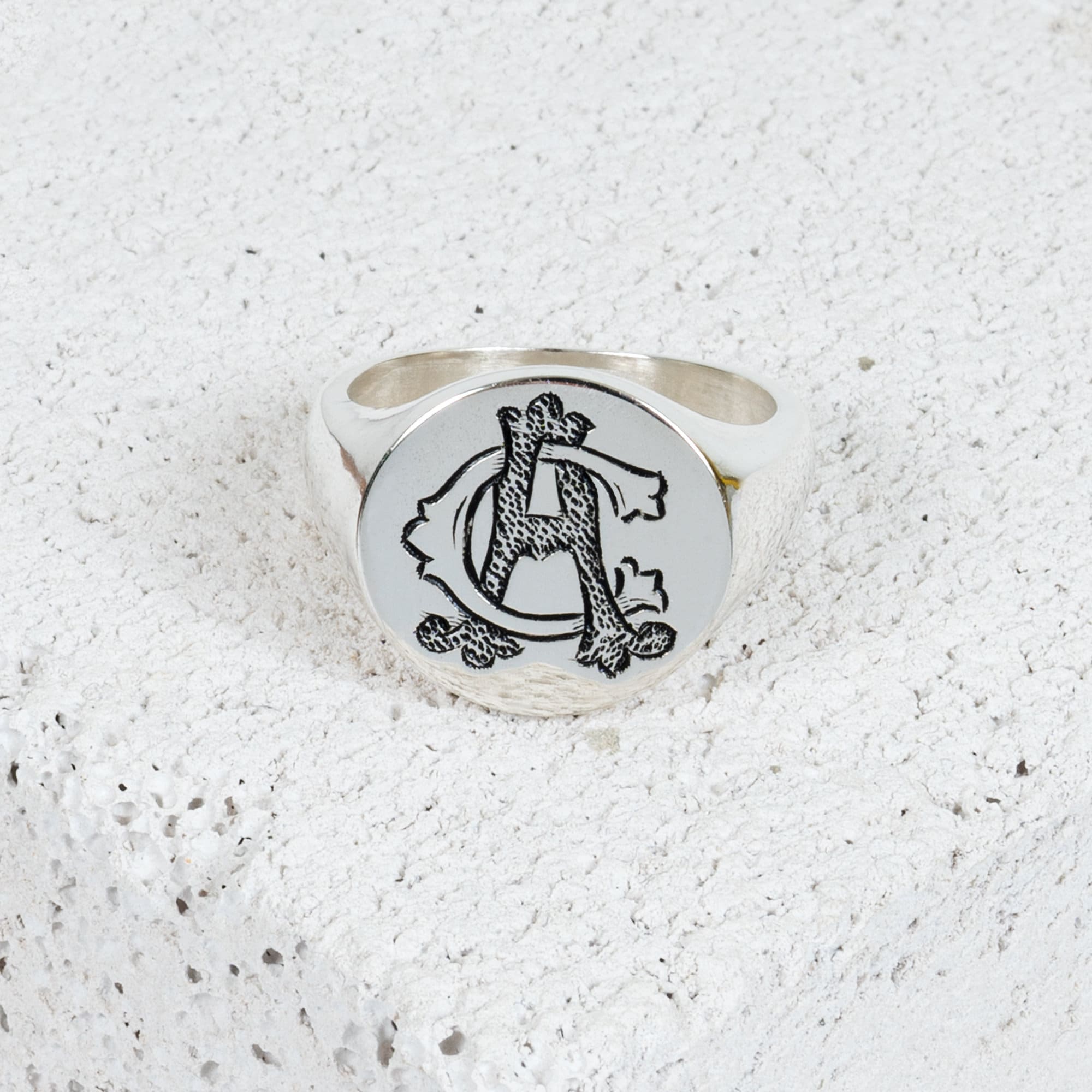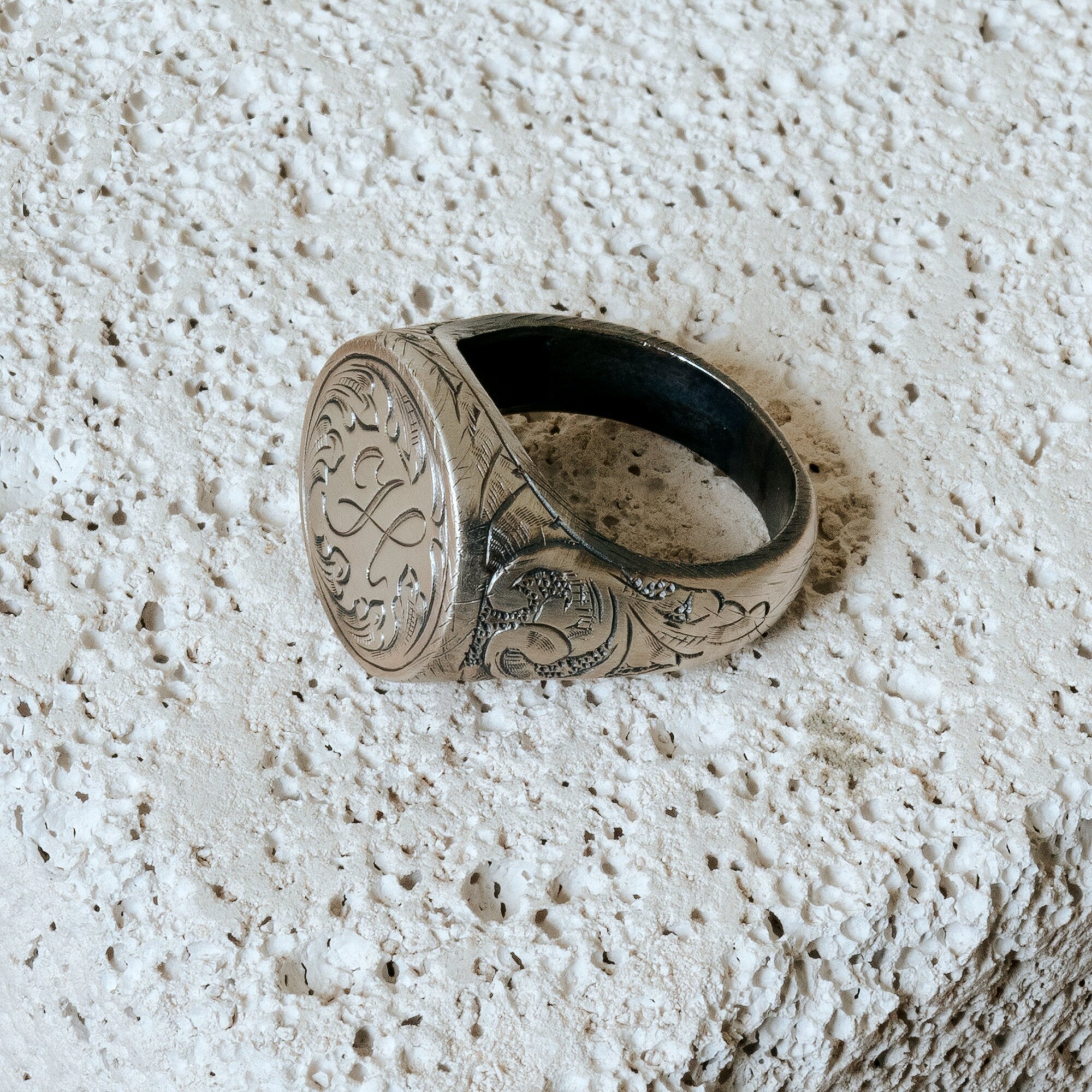 Custom Engraved Oval Signet Ring, Custom Silver Pinky Ring