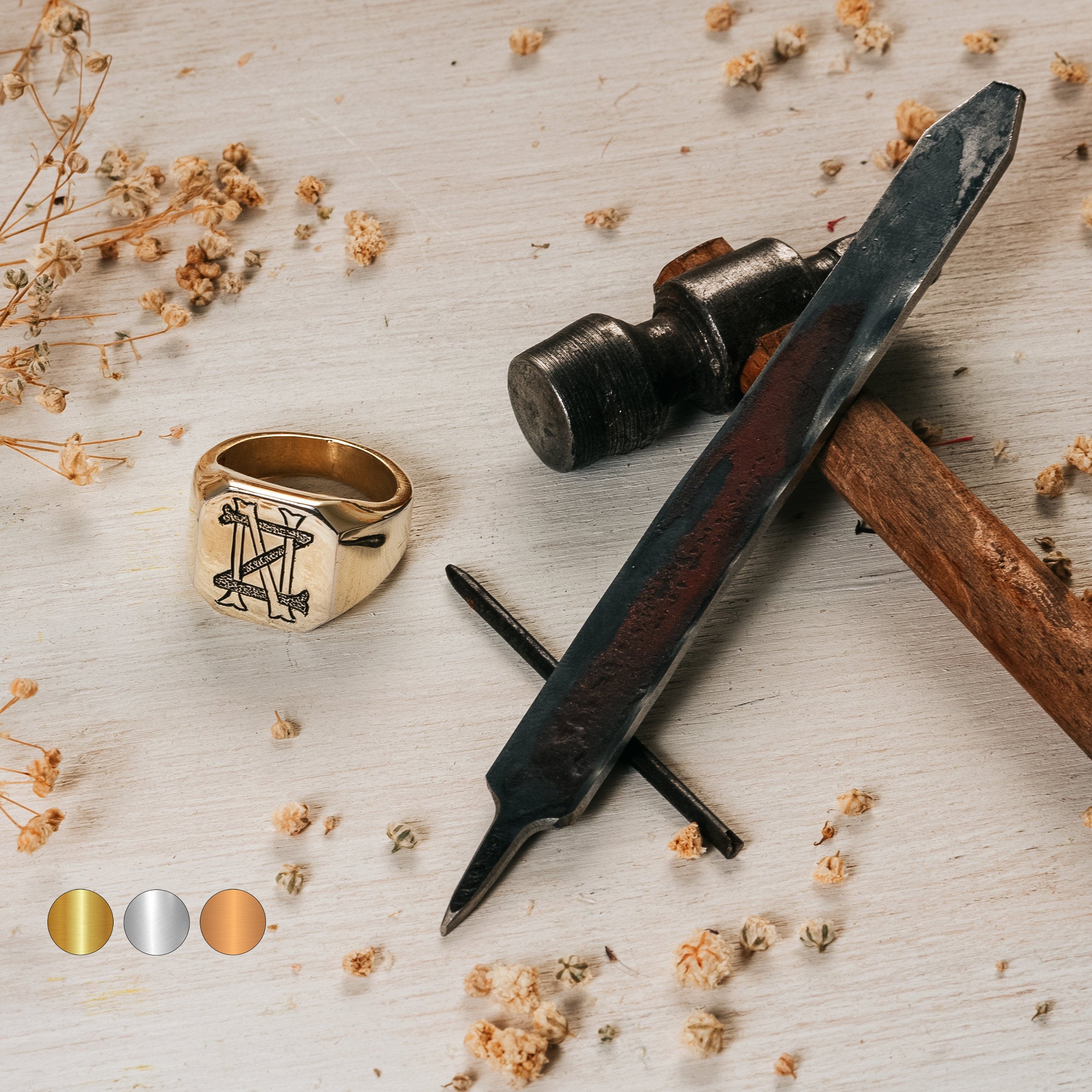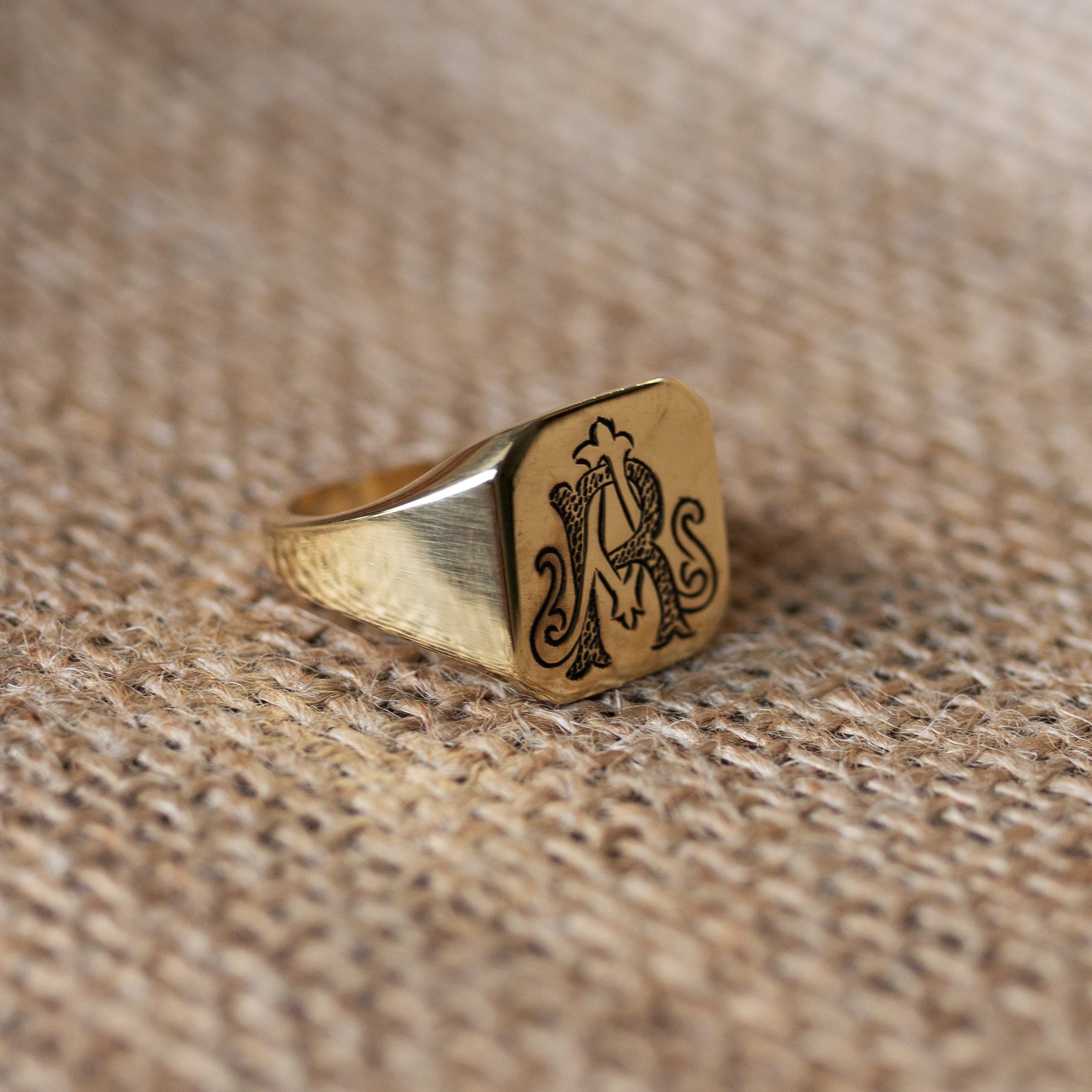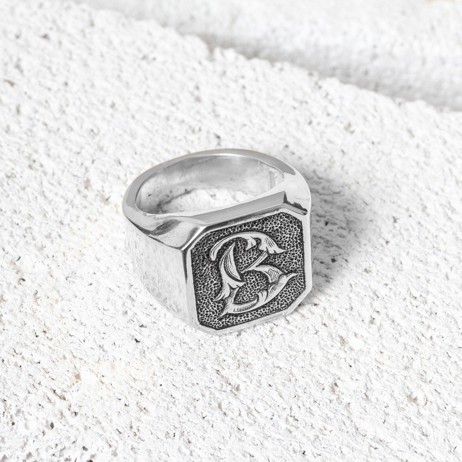 Custom Engraved Rectangle Signet Ring, Custom Silver Pinky Ring