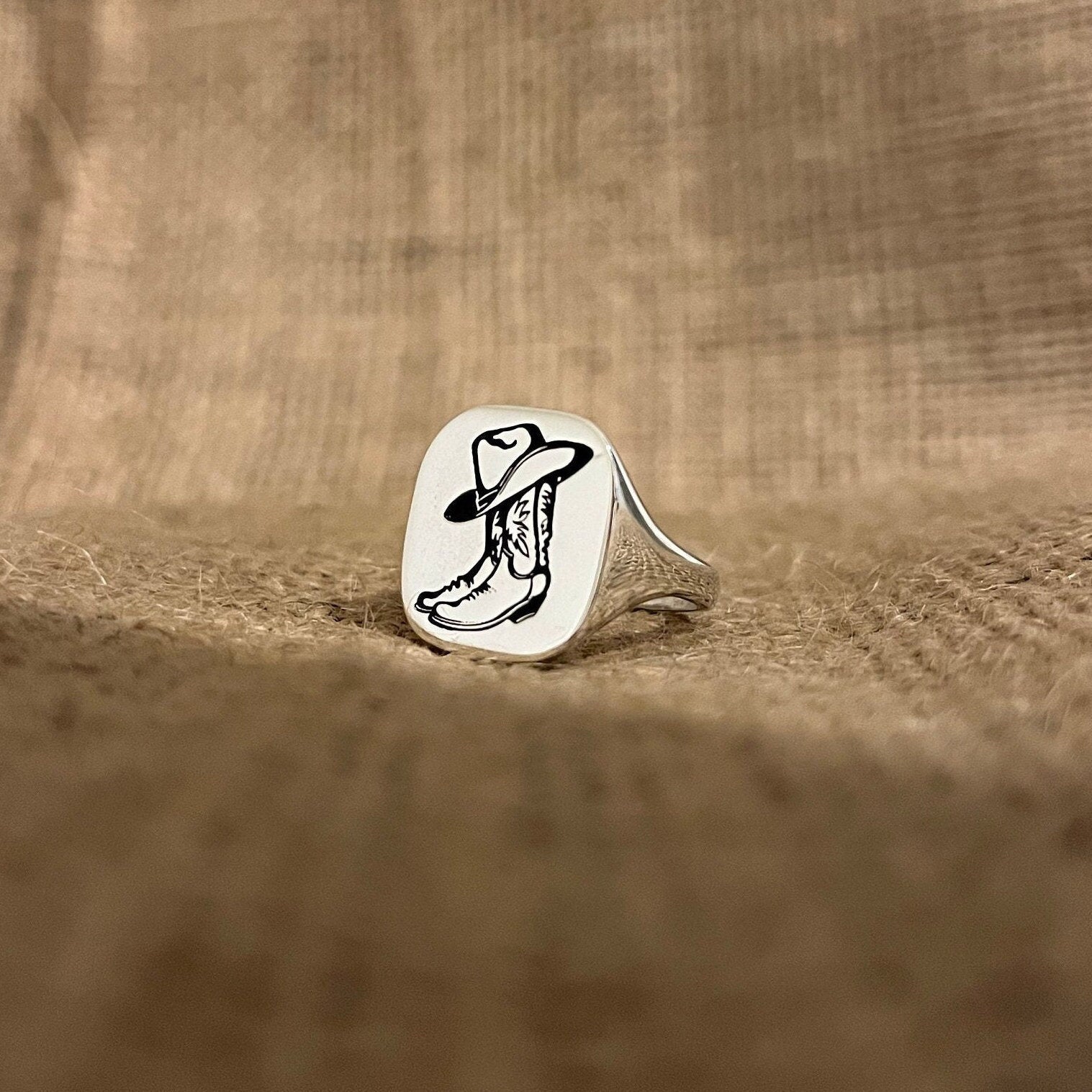 • This Cowboy Boot Signet Ring is stylish and pretty ideal for everyday use. Engraving details of 925k handmade silver ring are very detailed and eye-catching. The ring is coated with rodium to emphasize the details of handmade engraving •