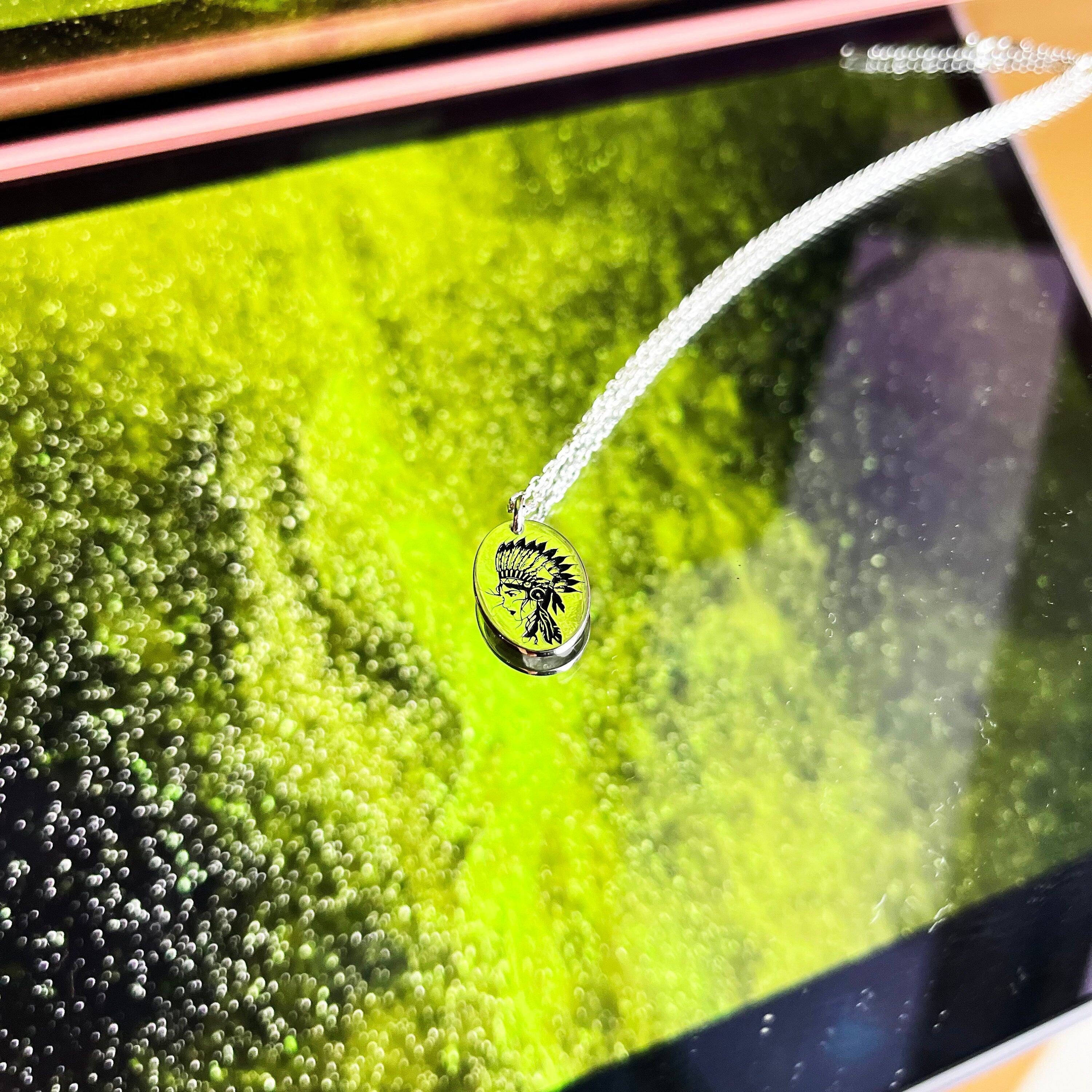 Native American Indian Head Woman Necklace, Sioux Pendant