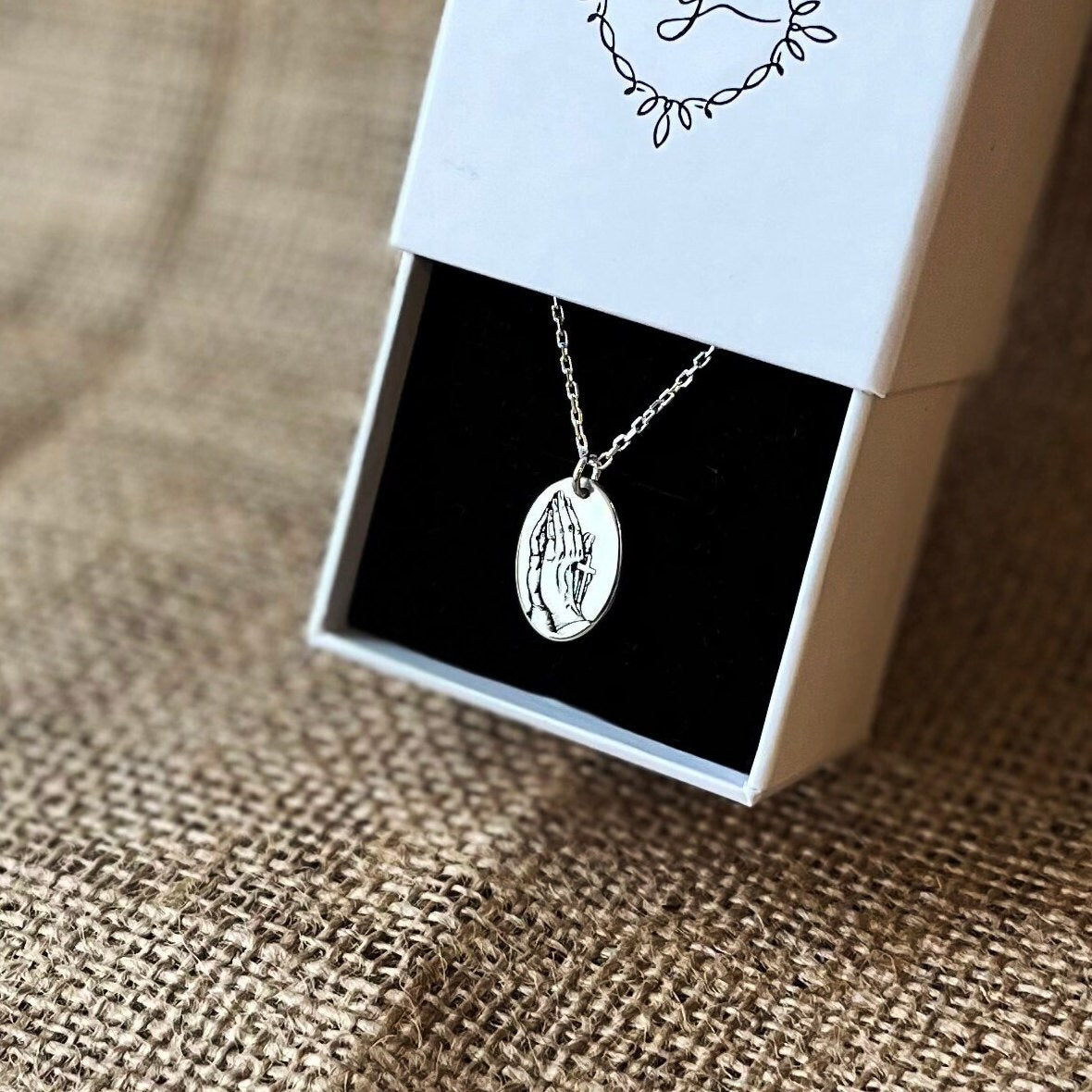 • This Praying Hands Necklace is stylish and pretty ideal for everyday use. Engraving details of 925k handmade silver necklace are very detailed and eye-catching. The ring is coated with rodium to emphasize the details of engraving •