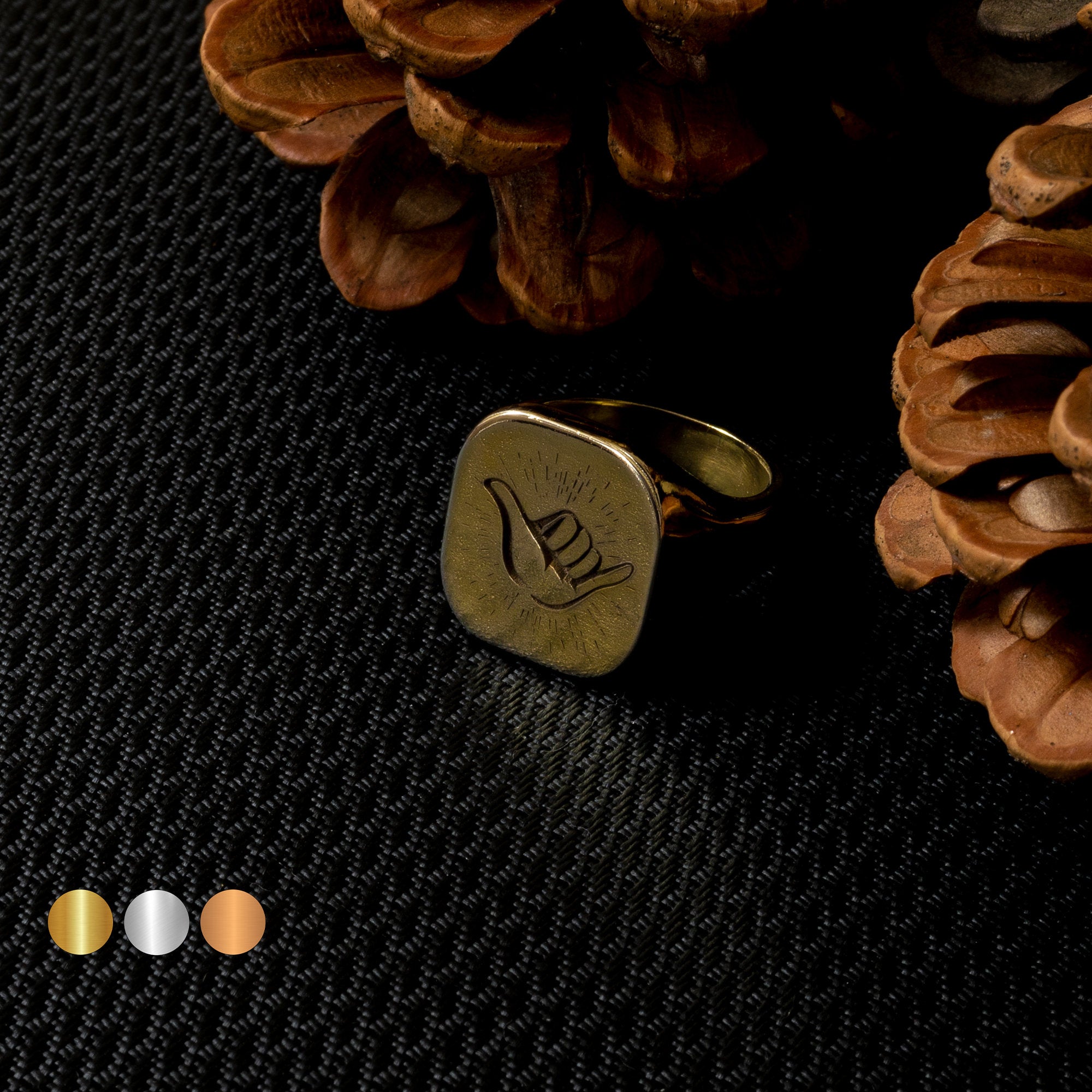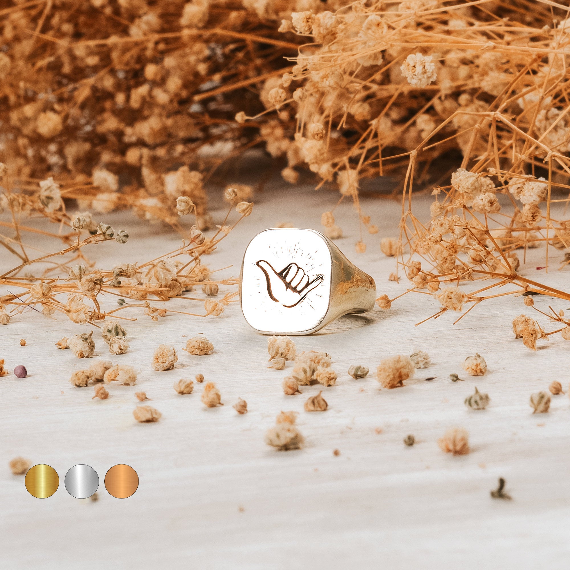 • This Shaka Hand Looser Signet ring is stylish and pretty ideal for everyday use. Engraving details of 925k handmade silver ring are very detailed and eye-catching. The ring is coated with rodium to emphasize the details of handmade engraving •