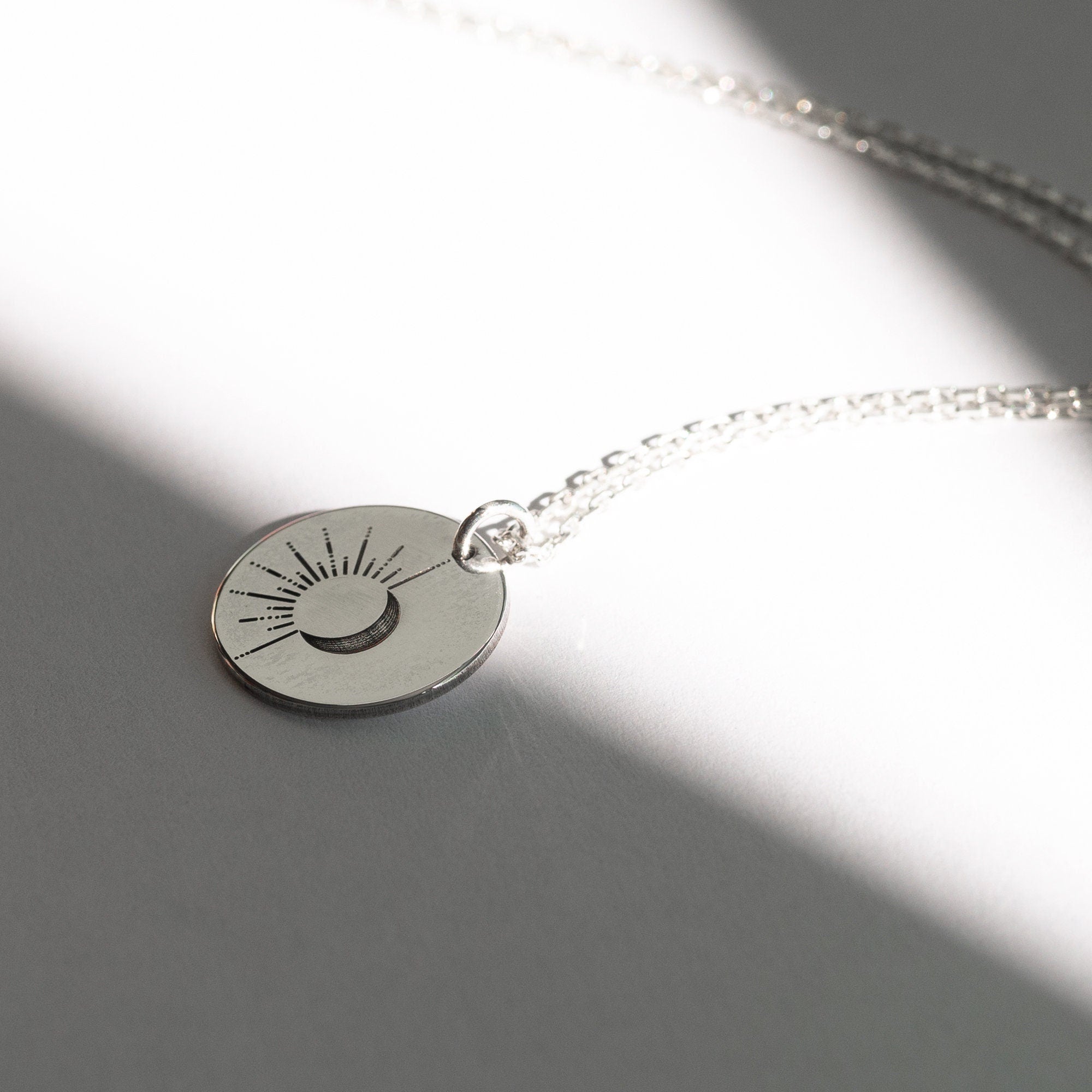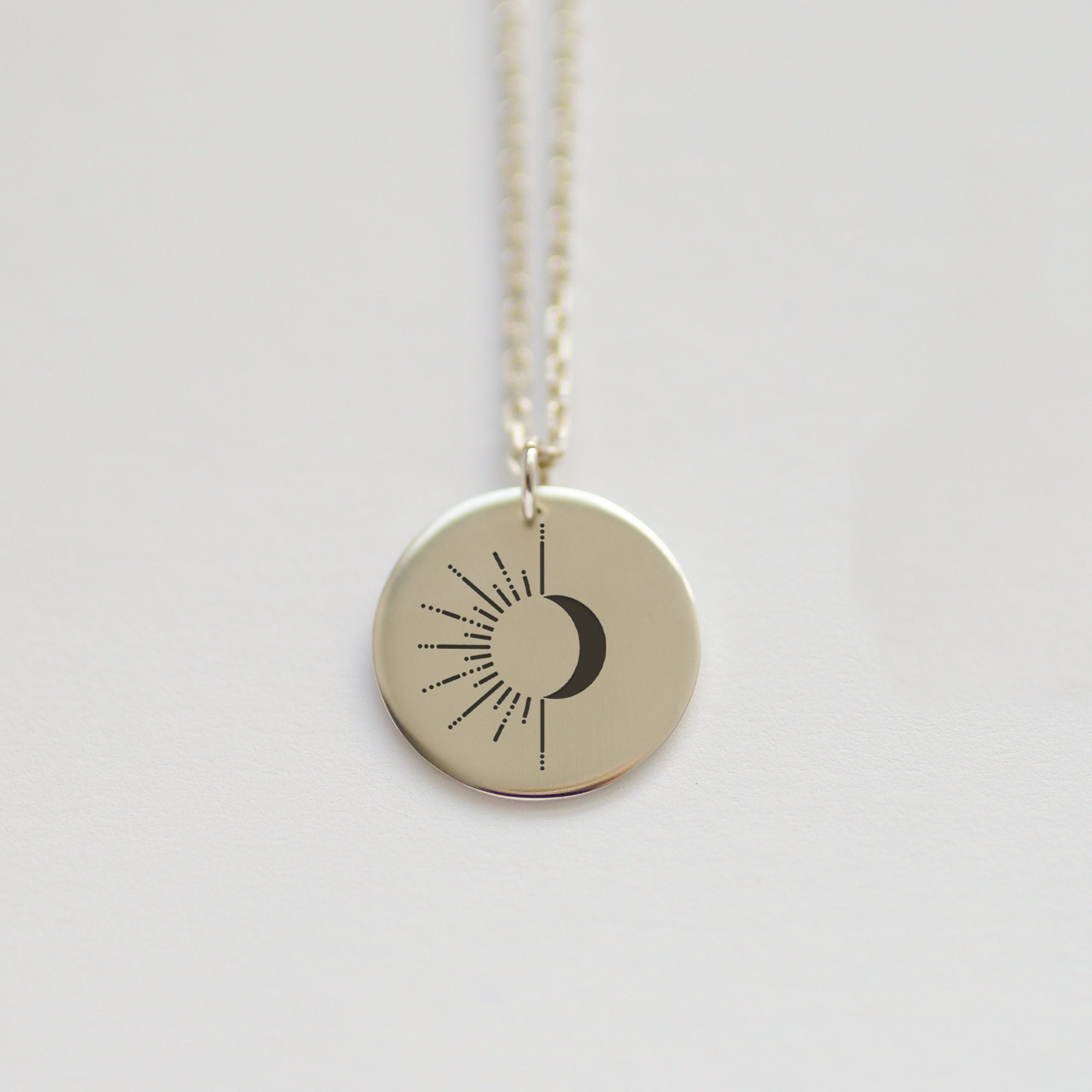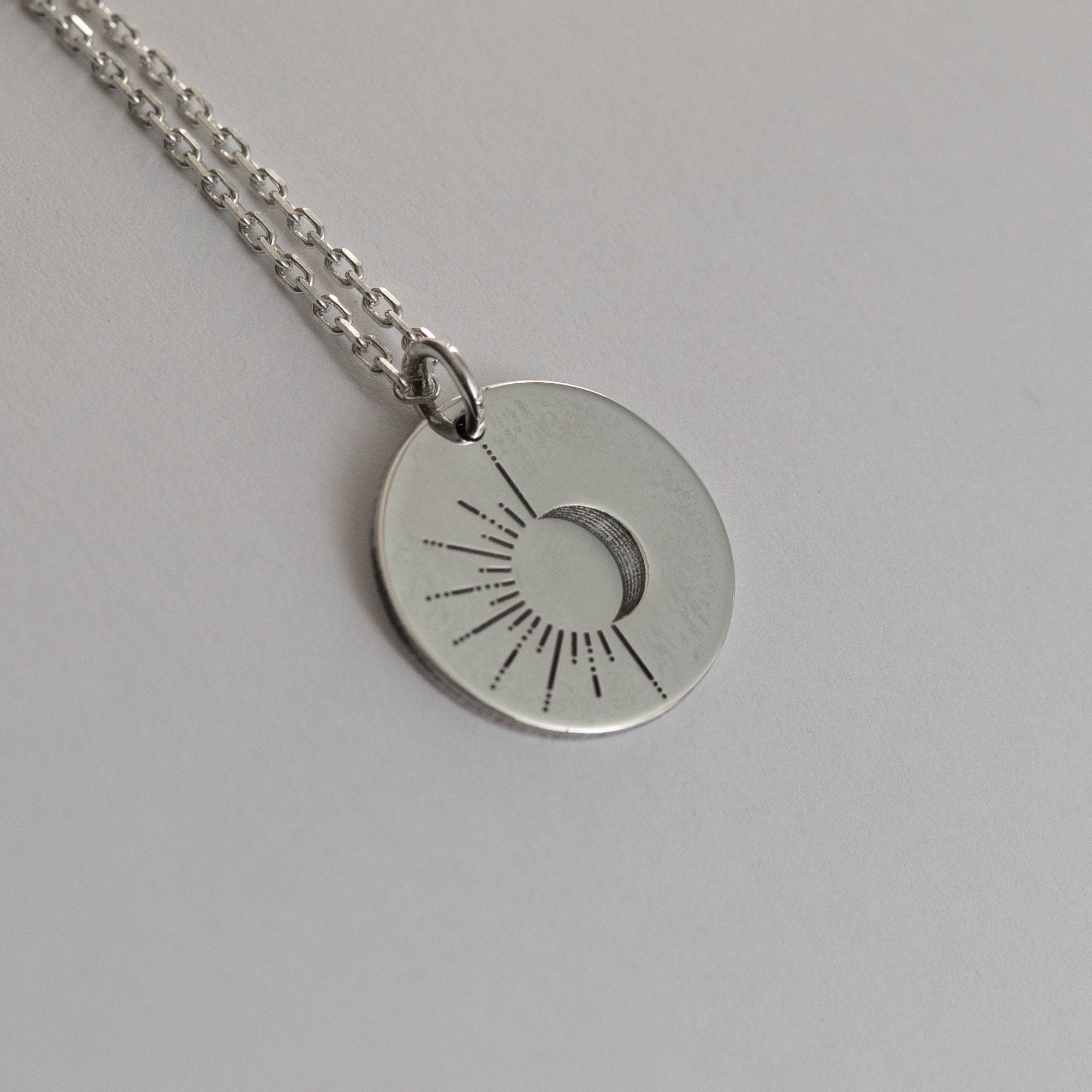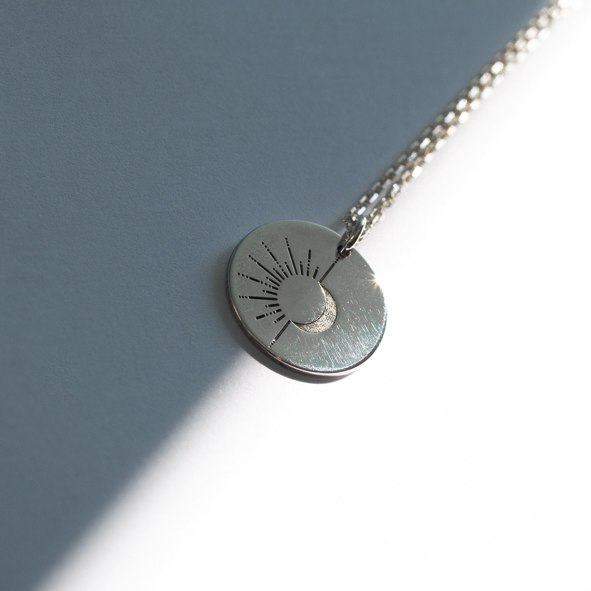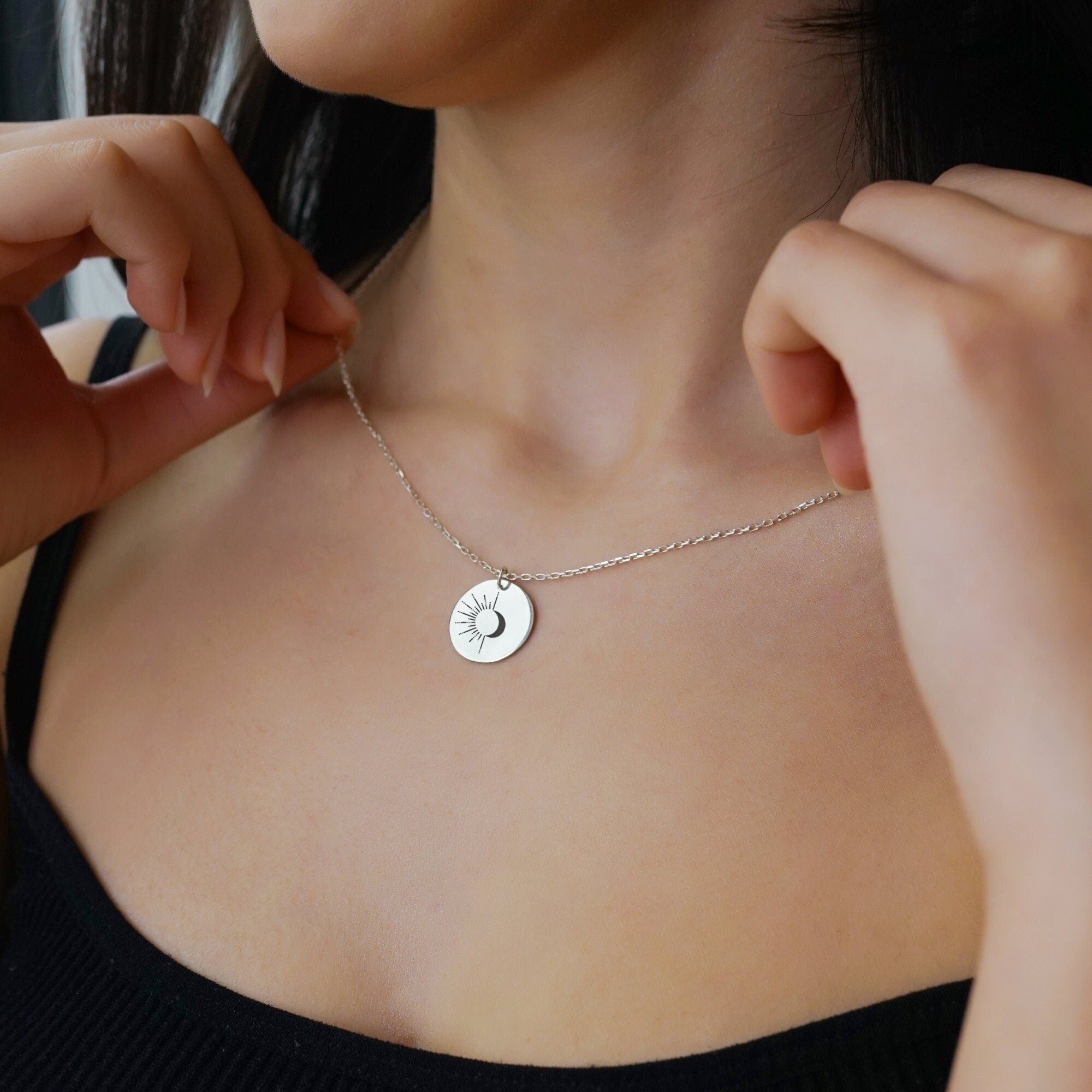 • This Sun and Moon Necklace is stylish and pretty ideal for everyday use. Engraving details of 925k handmade silver necklace are very detailed and eye-catching. The ring is coated with rodium to emphasize the details of engraving •